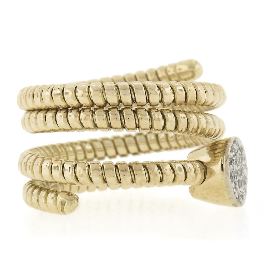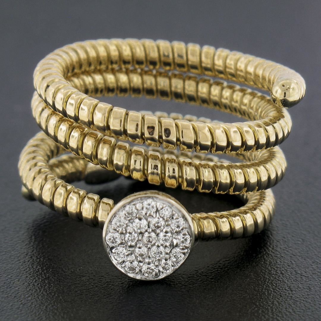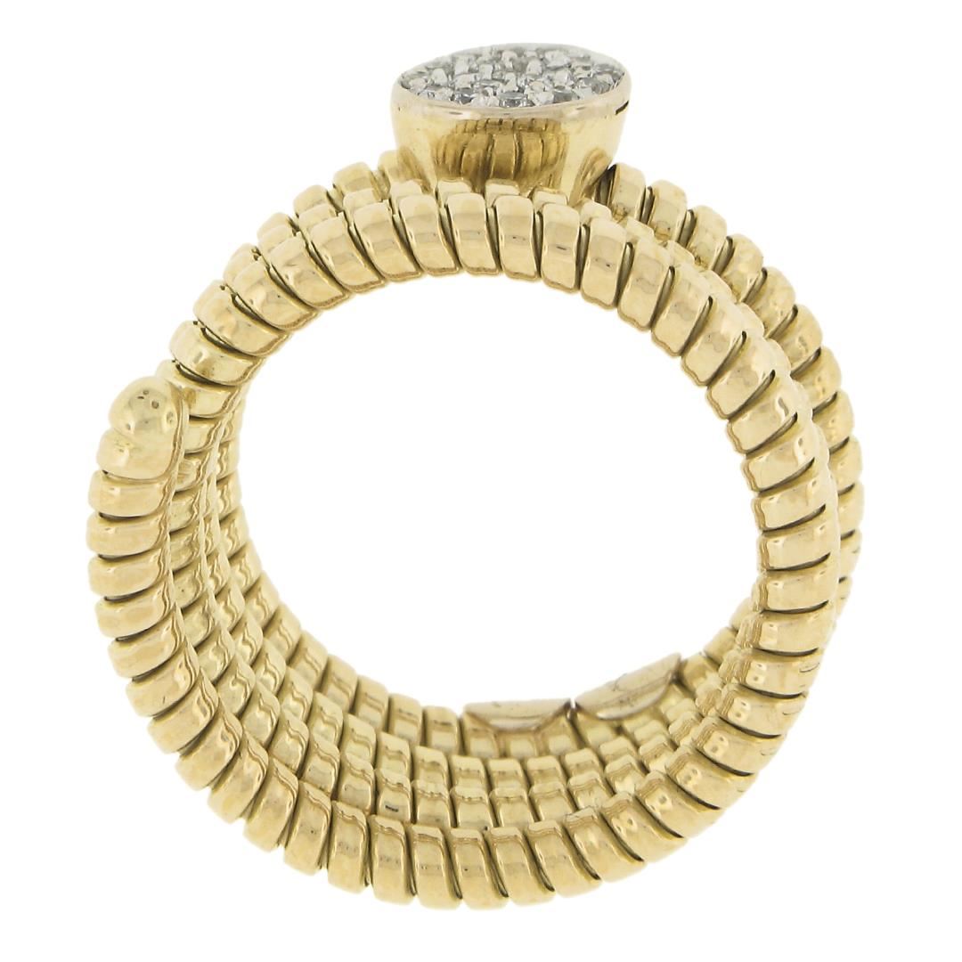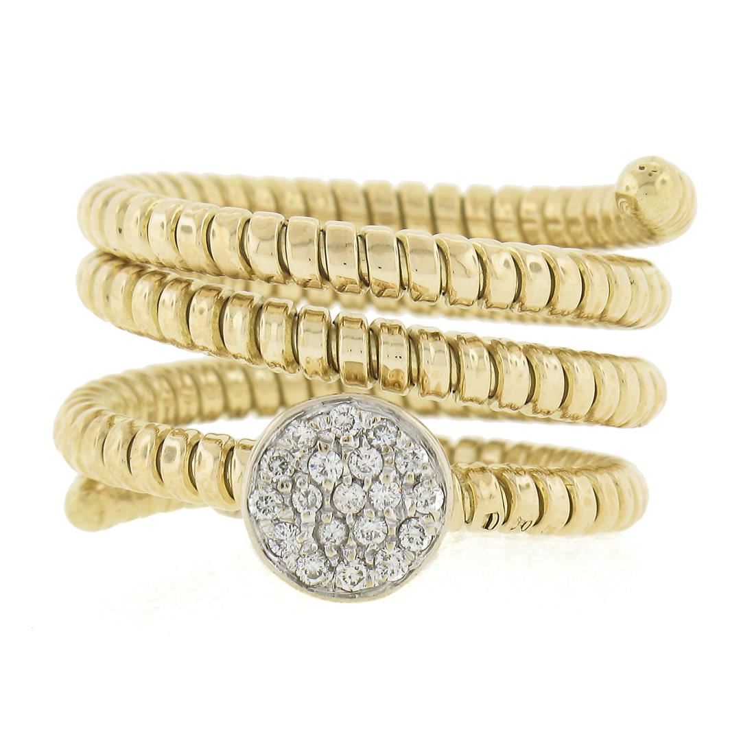 A solid 18k yellow & white gold stack look ring, with 19 round cut natural diamonds (H/I - SI1/SI2 ; 0.20ctw). The ring is size 6.5, weighs a total of 10.84 grams, and measures 16.2mm wide.