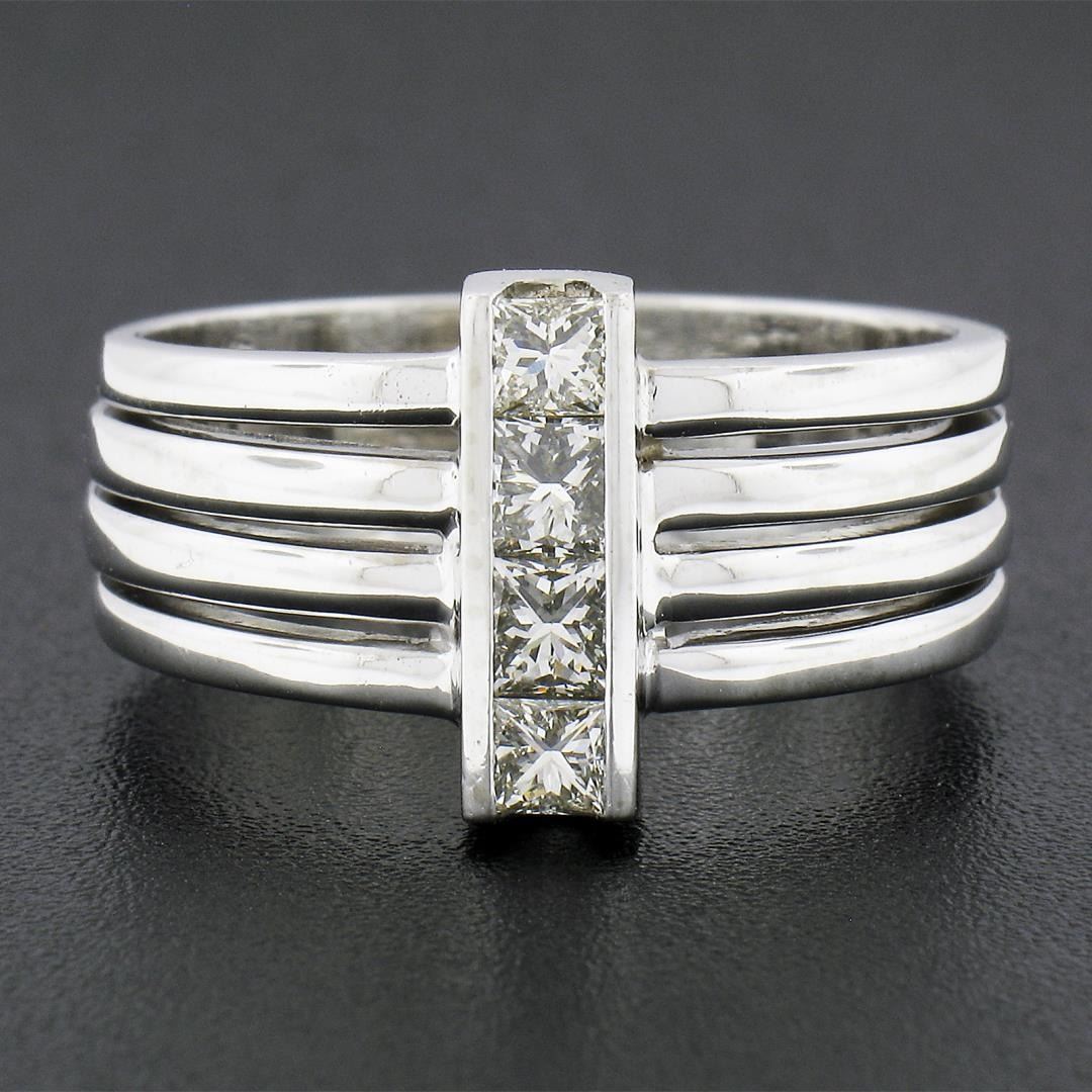 A solid 18k white gold 4 row ring, with 4 princess cut natural diamonds (H/I - VS2-SI1 ; 0.72ctw). The ring is size 10.0, weighs a total of 10.88 grams, and measures 12.8mm wide.