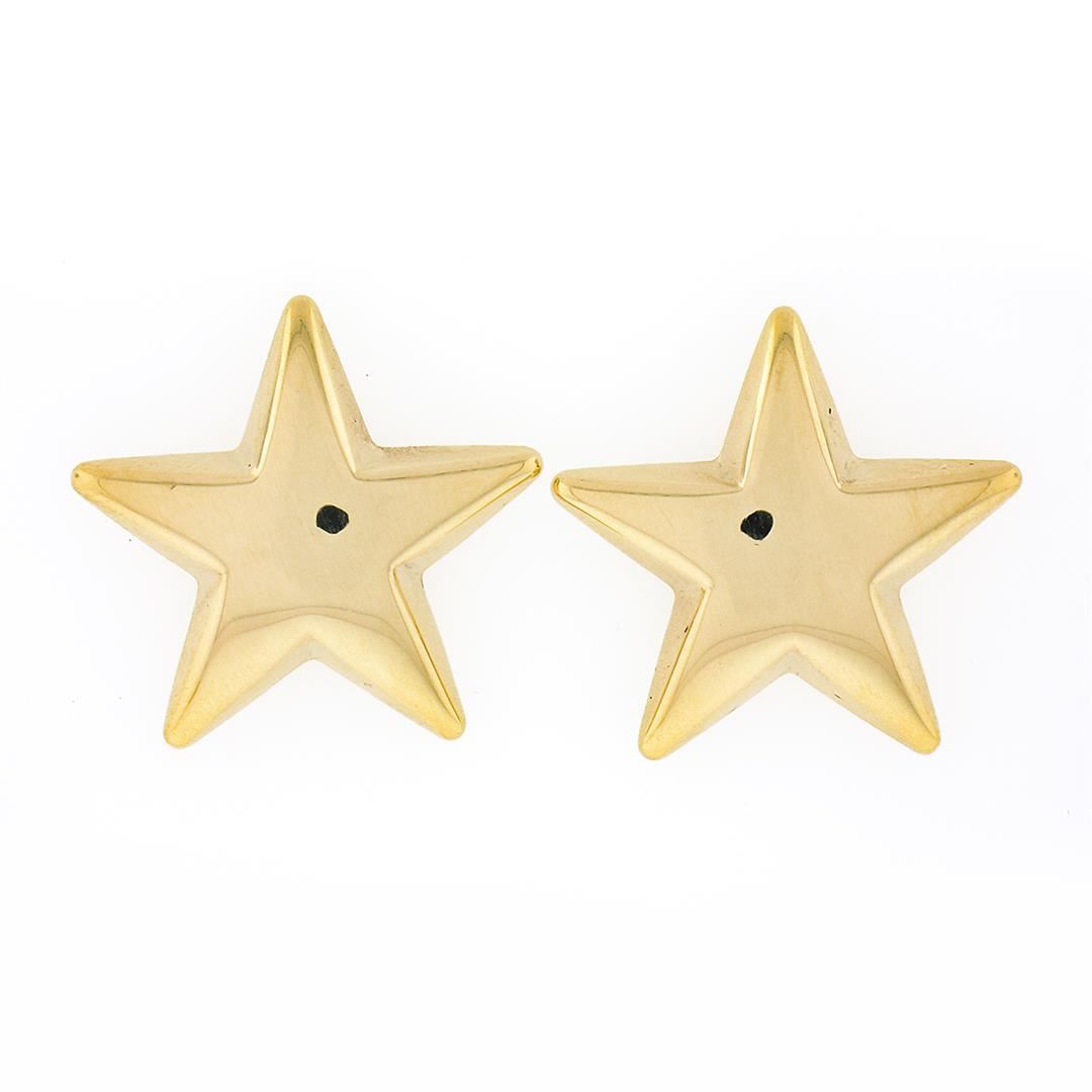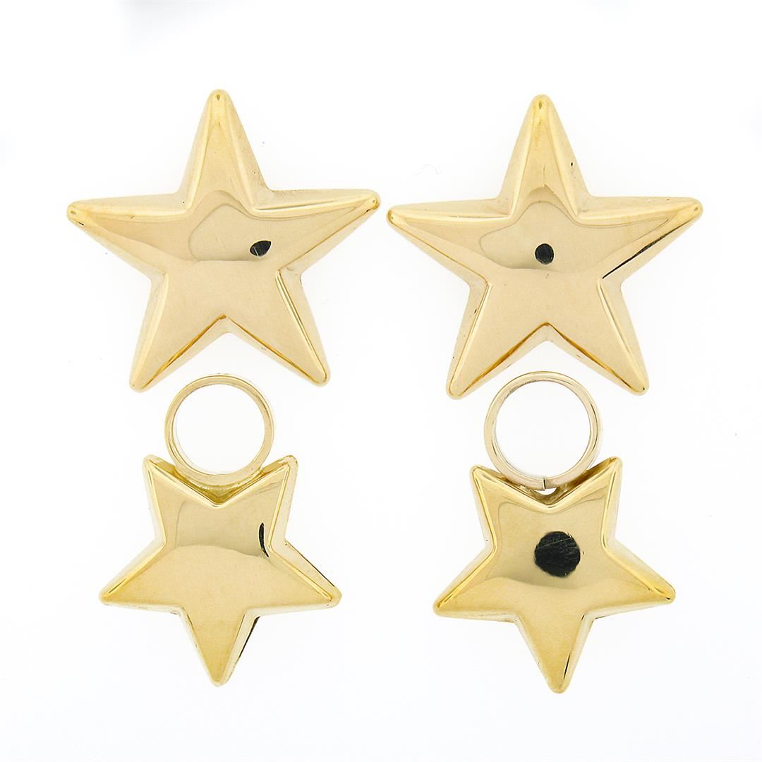 Estate 18k Yellow Gold Puffed & Polished Dual Star Drop Dangle Enhancer Earrings