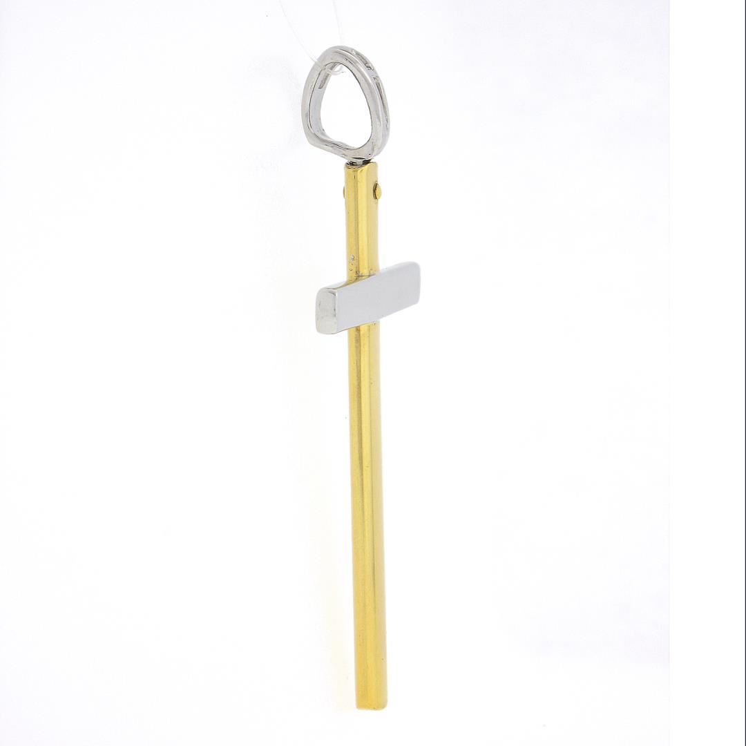A solid 18k yellow & white gold cross pendant. The pendant weighs a total of 3.28 grams, measures 47x26.4mm including the bail.
