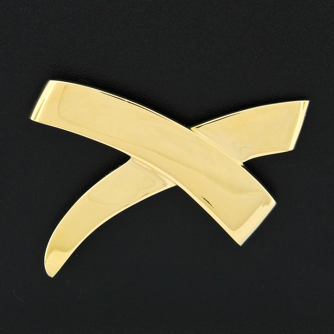 An authentic, vintage, Tiffany & Co. solid 18k yellow gold large "X" brooch. Measures 64.85x42.9mm and weighs a total of 29.62 grams.