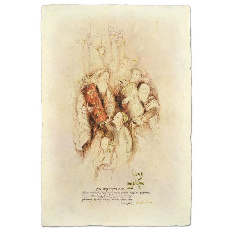 "Ets Chaim" is a mixed media giclee on handmade Indian paper with goldleaf by Brachi Horen, hand signed by the artist! This creation received personal attention by the artist in the form of water coloring and gilding. Includes Certificate of Authenticity! Measures approx. 15.5" x 23" (with border), 12" x 20" (image).