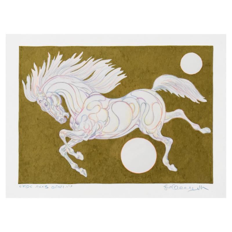"Etude AXXB" is an original hand colored drawing on paper with hand laid gold leaf by Guillaume Azoulay, hand signed by the artist. This piece comes custom framed. Includes Letter of Authenticity. Measures approx. 22" x 18.5" (frame); 10" x 7.5" (image).