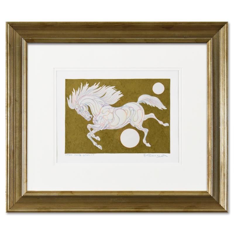 "Etude AXXB" is an original hand colored drawing on paper with hand laid gold leaf by Guillaume Azoulay, hand signed by the artist. This piece comes custom framed. Includes Letter of Authenticity. Measures approx. 22" x 18.5" (frame); 10" x 7.5" (image).