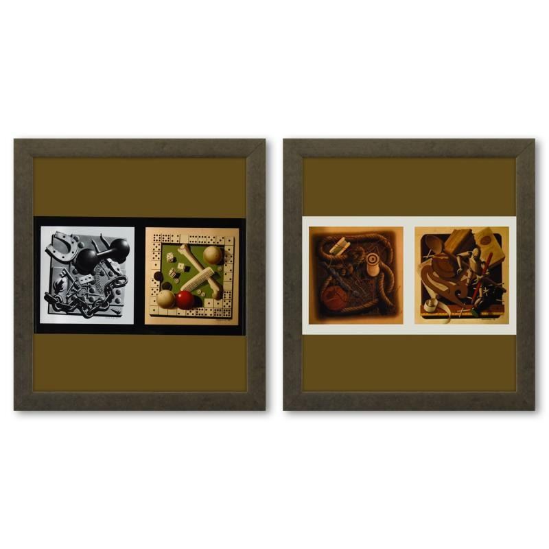 "Etude De Matiere (1,4) et Etude De Matiere (2,3) de la serie Graphismes 1 (Diptych)" is a set of heliogravure prints on paper, published in 1977, by Victor Vasarely (1908-1997). These pieces come custom framed, with a letter of authenticity and with a 1976 Vasarely paperback. Measures approx. 12" x 13" (frame), 9" x 5" (image).