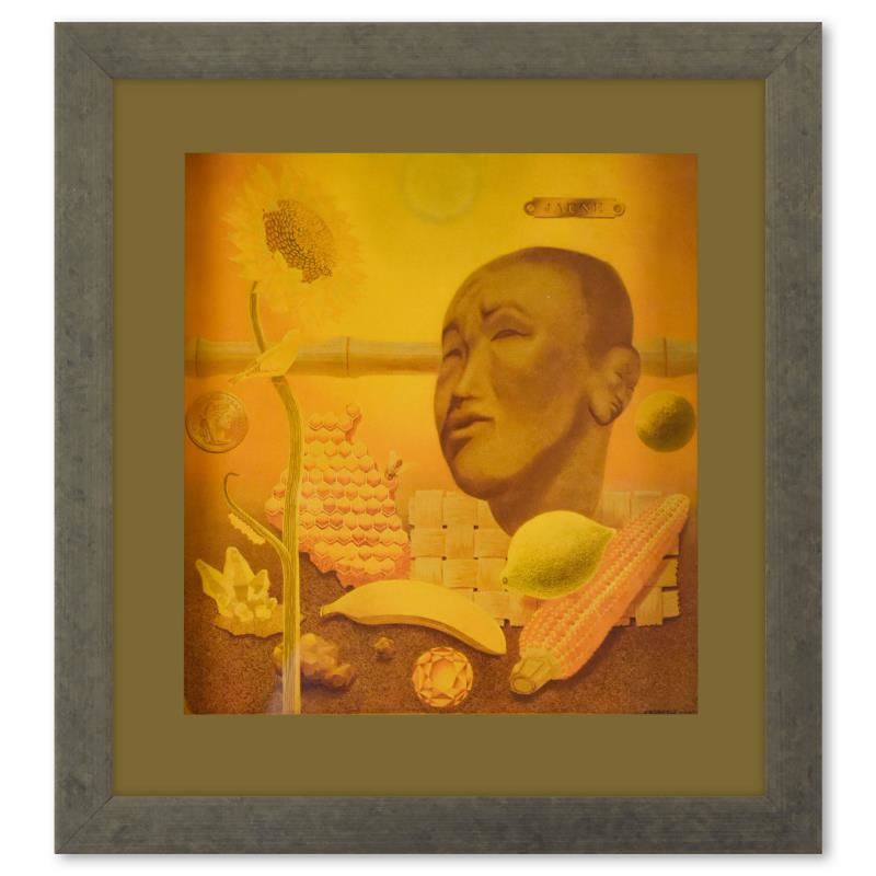 "Etude En Jaune de la série Graphismes 2" is a heliogravure print on paper, published in 1977, by Victor Vasarely (1908-1997). This piece comes custom framed, with a letter of authenticity and with a 1976 Vasarely paperback. Measures approx. 12" x 13" (frame), 7" x 7" (image).