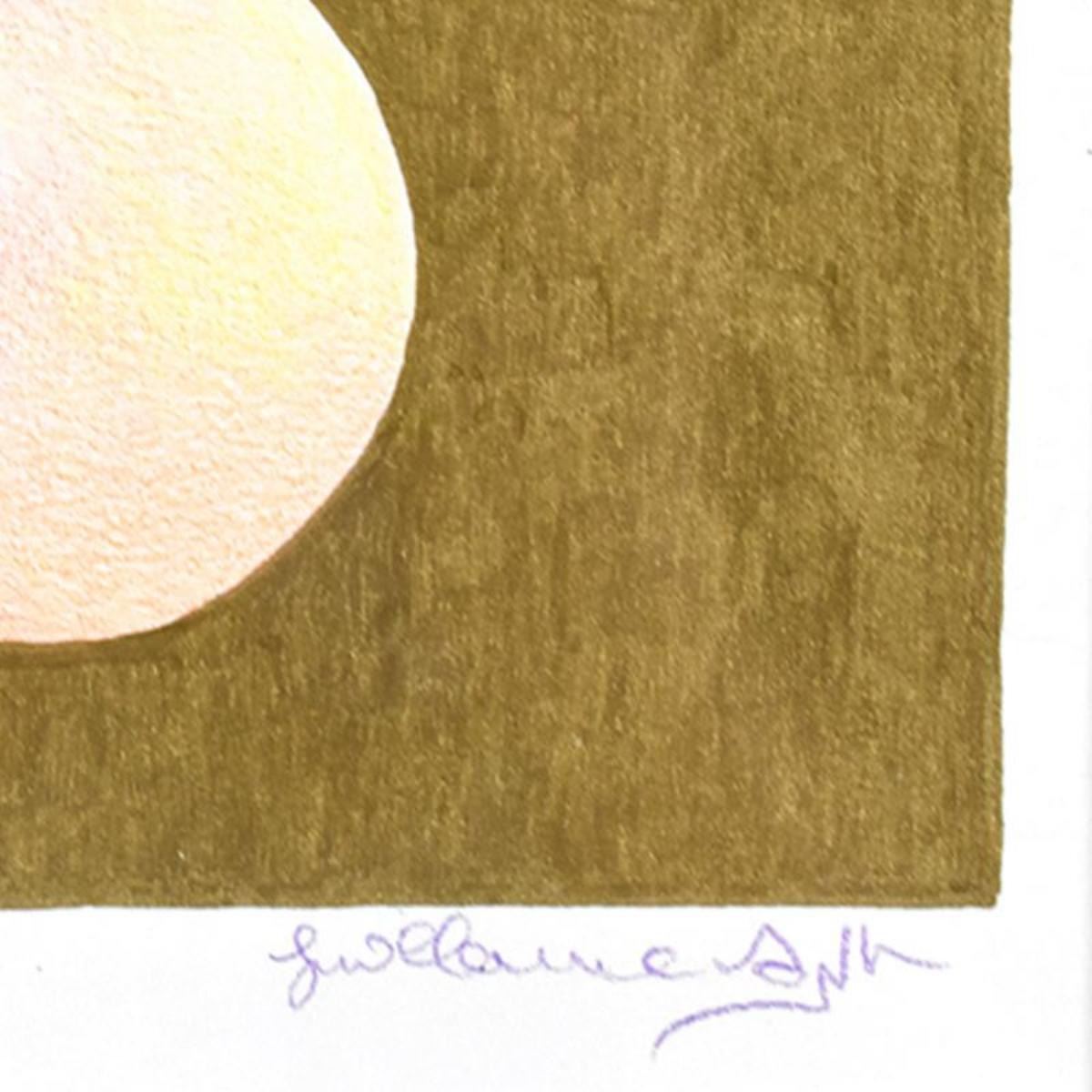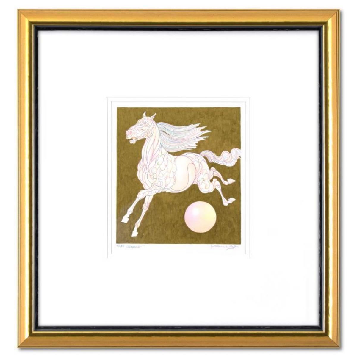 "Etude GDMO" is an original hand colored drawing on paper with hand laid gold leaf by Guillaume Azoulay, hand signed by the artist. This piece comes custom framed. Includes Letter of Authenticity. Measures approx. 19" x 20" (frame); 7.5" x 8" (image).