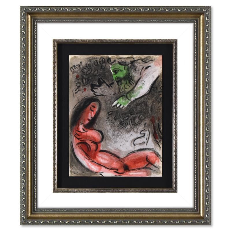 "Eve Incurs God's Displeasure" is a lithograph on paper by Marc Chagall (1887-1985). This piece comes framed. Includes Letter of Authenticity. Measures approx. 21" x 24.5" (frame), 10" x 14" (image).
