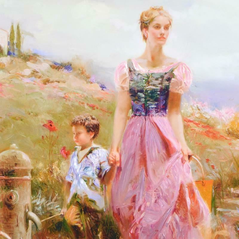 "Evening Out" is an artist embellished limited edition giclee on canvas by Pino (1939-2010), CP Numbered and hand signed by the artist. Includes Certificate of Authenticity. Measures approx. 18" x 20" (image). This piece is not stretched.