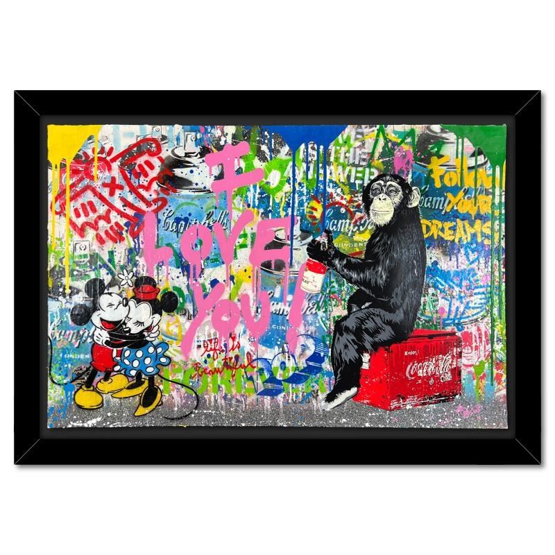 "Everyday Life" is a mixed media original on deckle edge paper by Mr. Brainwash, hand signed inverso and bearing the thumbprint of the artist. This piece comes custom framed. Includes Certificate of Authenticity. Measures approx. 40" x 28" (frame), 36" x