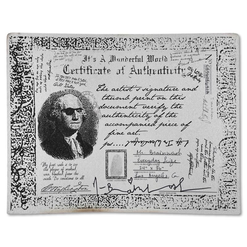 Everyday Life is a mixed media original on deckle edge paper by Mr. Brainwash, hand signed inverso and bearing the thumbprint of the artist. This piece comes custom framed. Includes Certificate of Authenticity. Measures approx. 28 x 40 (frame), 24 x 36 (image).