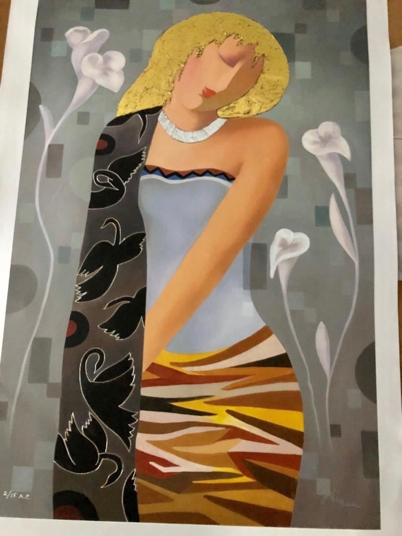 Arbe created this hand embellished giclee on canvas w/ gold & silver foil. A signed AP measuring 36x24" image 39.75x27.25" w/ margins.
