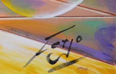 Artist: Ferjo (b. 1946) - Title: Music Room with Michelangelo - Medium: Original Acrylic on Canvas - Signature: This one-of-a-kind work is hand-signed by the artist at the bottom of the image - Image Size: Approximately 30 inches x 40 inches - Framed: Stretched and Ready for Framing - Details: This work comes with a Certificate of Authenticity - Biography: Ferjo (b. 1946 - Fernando de Jesus Oliveira) is Brazilian, but lives in the U.S. now. A master of many different styles, he has become known for his work in surrealism. Dali and Magritte would be proud of this follower of theirs. Whether he is painting a room interior, complete with floating objects, or a marina scene his use of colors and lines is flawless. - Ferjo's originals have sold for more than $100,000.00. -