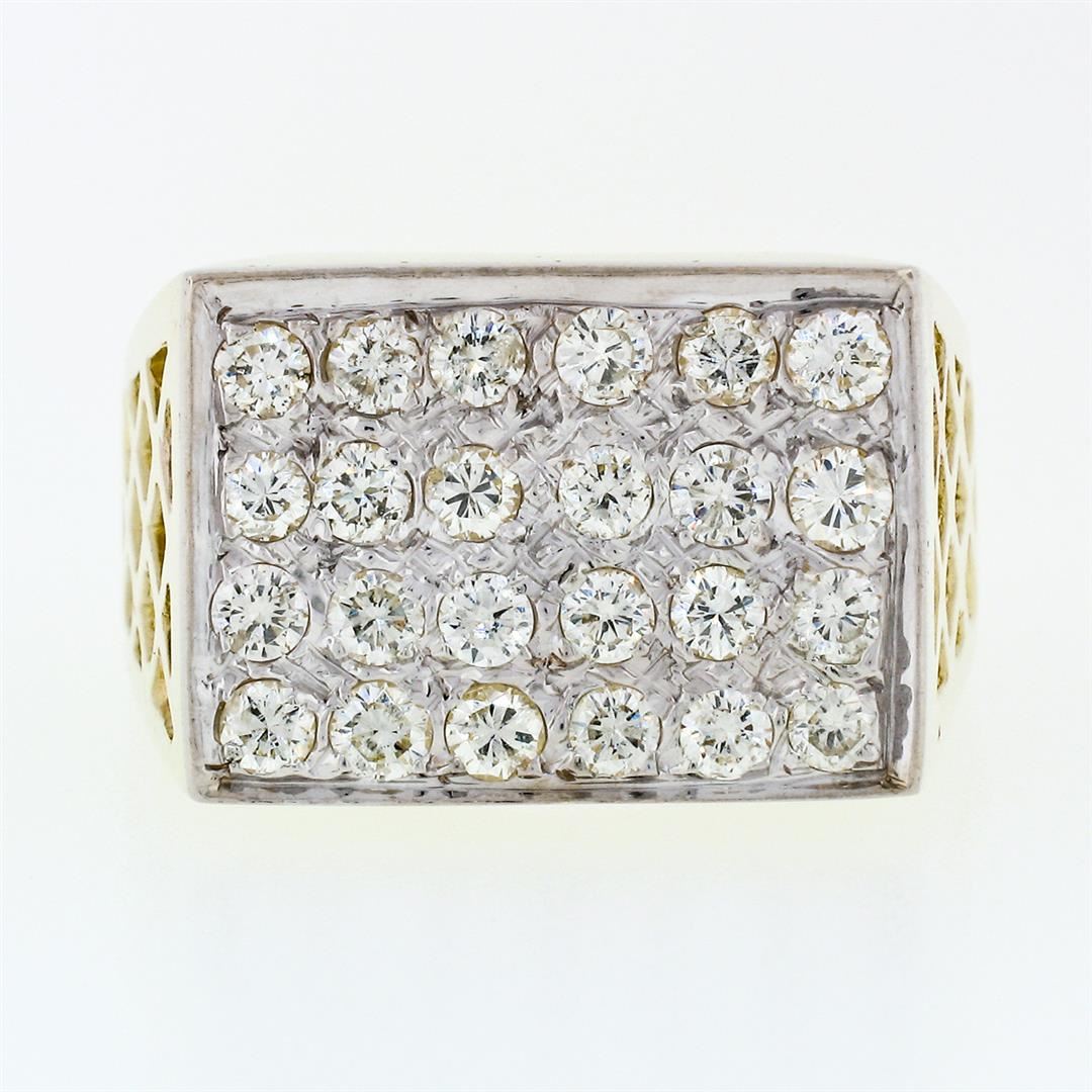 An estate solid 14k yellow & white gold men's band ring, with 24 round brilliant cut natural diamonds (G/H - VS1/VS2 w/ a few SI1 ; 1.44ctw). The ring is size 10, weighs a total of 9.49 grams, and measures 13.14mm wide.