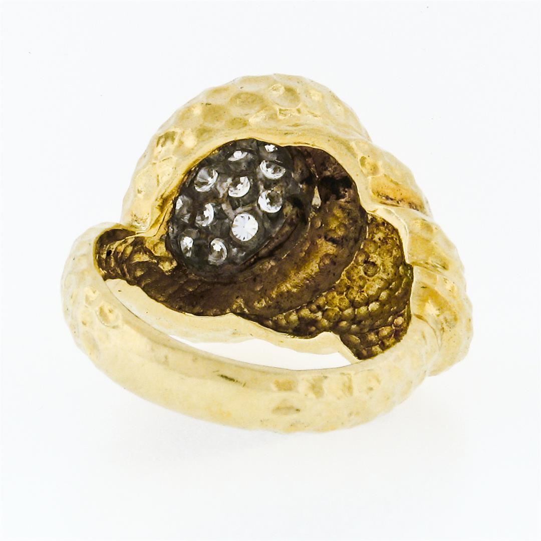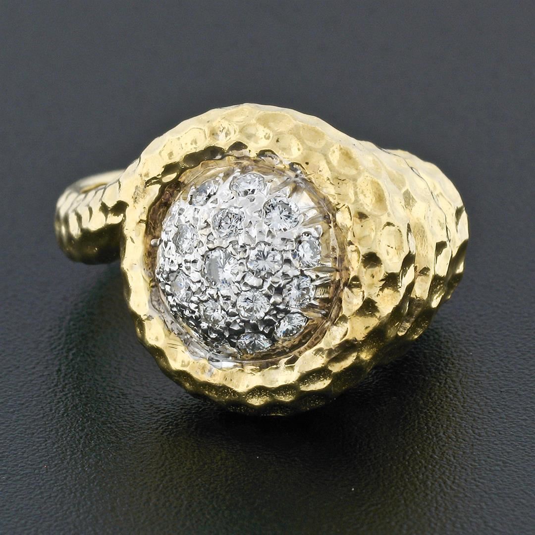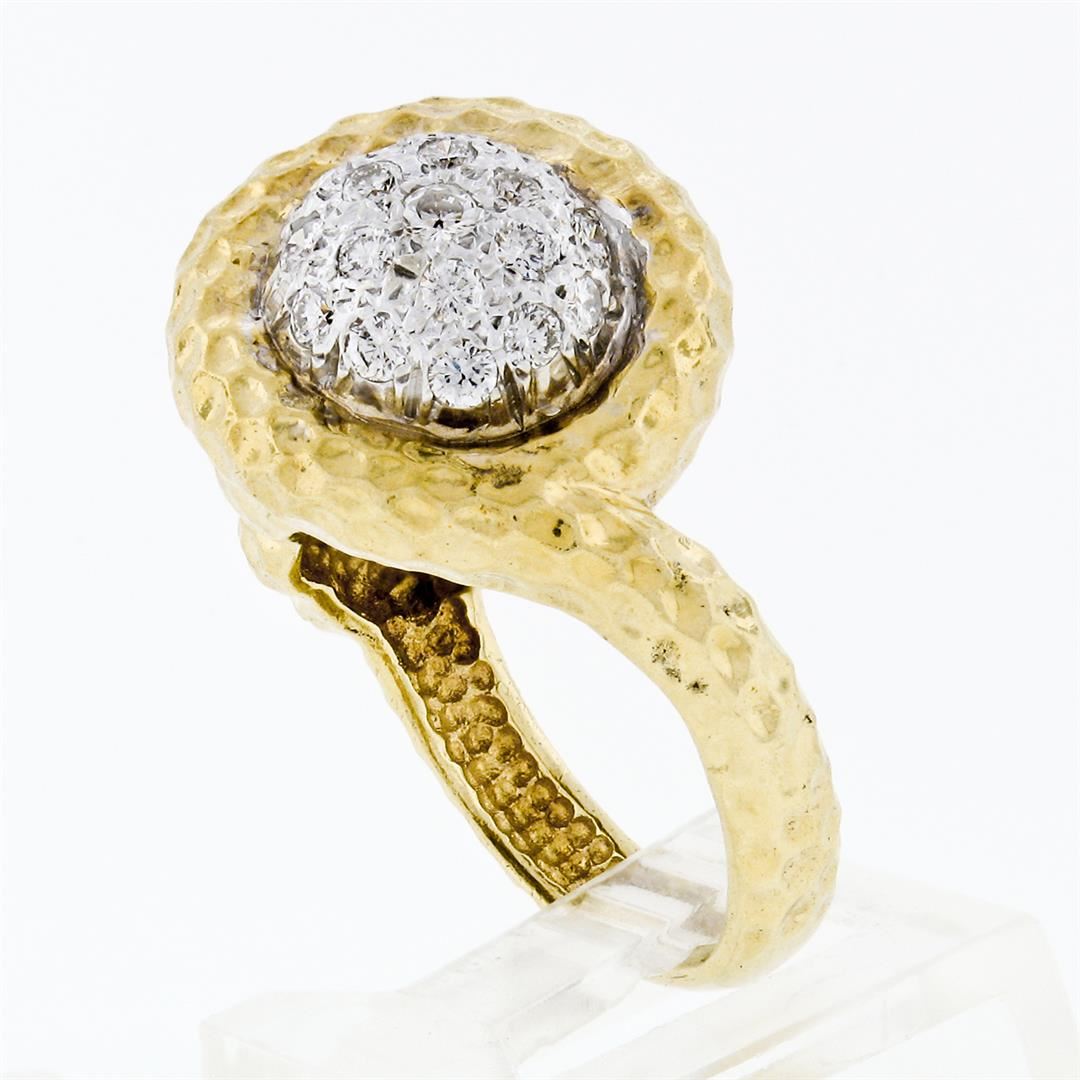 An estate solid 18k yellow & white gold cocktail ring by R. Stone, with 19 round brilliant cut natural diamonds (E/F - VS1/VS2 ; 0.45ctw). The ring is size 6.5, weighs a total of 12.80 grams, and measures 17mm wide.