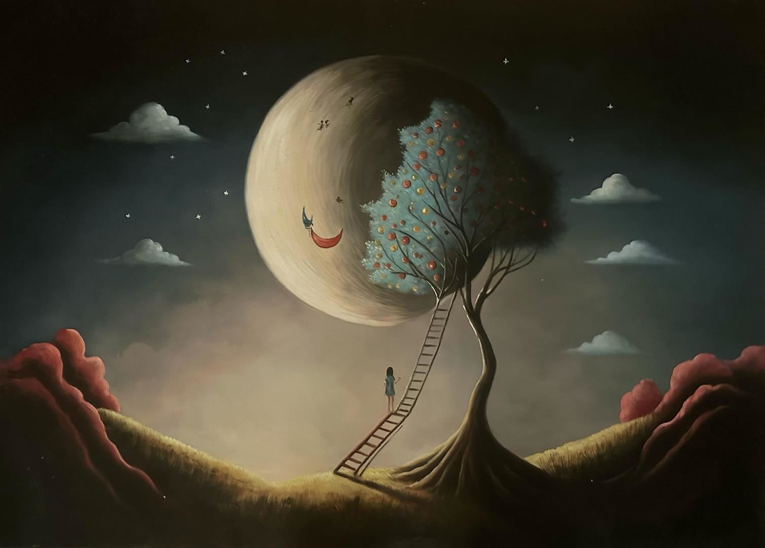 A stunning Surreal painting by emerging artist Mani. 20"x30" original on canvas, with COA