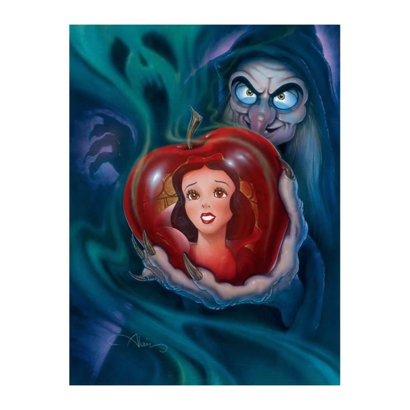 "Fairest in the Land" is a limited edition giclee on canvas by John Alvin (1948-2008), numbered and estate signed. This piece is licensed by Disney Fine Art. This piece has a 2" border and may be framed or gallery wrapped based on preference. Includes Certificate of Authenticity! Measures approx. 16" x 20" (image).