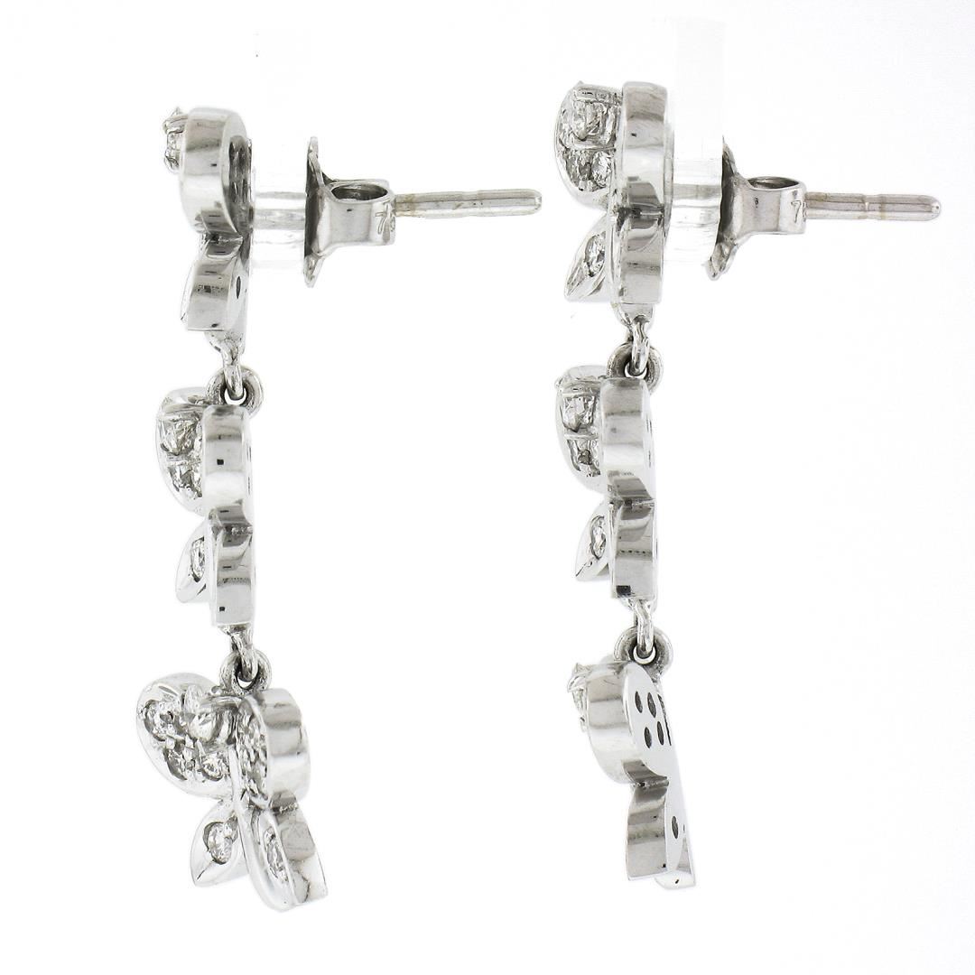 A solid 18k white gold dangle earrings, with 66 round brilliant cut natural diamonds (F/G - VS1-VS2 ; 0.80ctw). The earrings measure approximately 28.4x10.7mm and weigh a total of 7.18 grams.