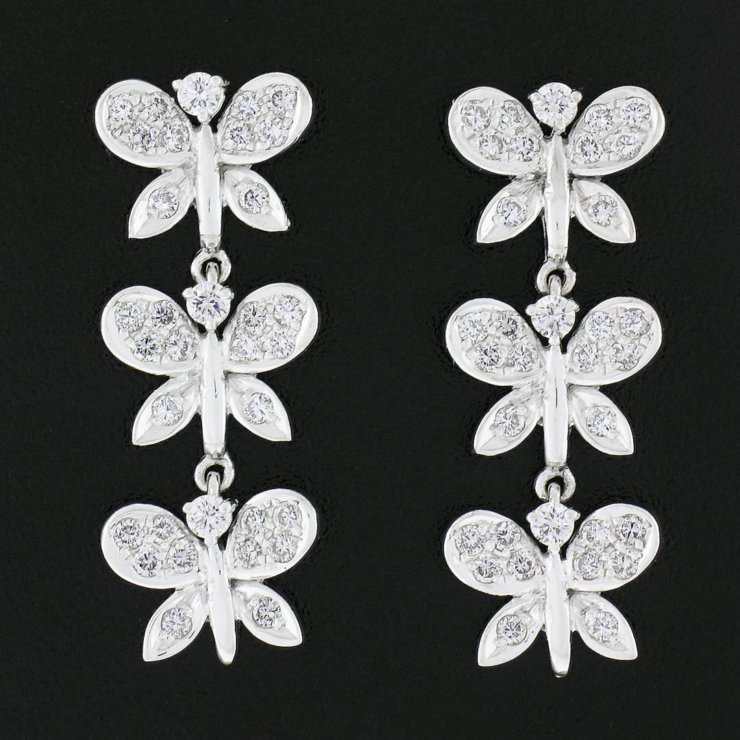 A solid 18k white gold dangle earrings, with 66 round brilliant cut natural diamonds (F/G - VS1-VS2 ; 0.80ctw). The earrings measure approximately 28.4x10.7mm and weigh a total of 7.18 grams.