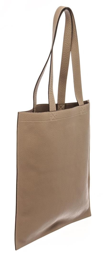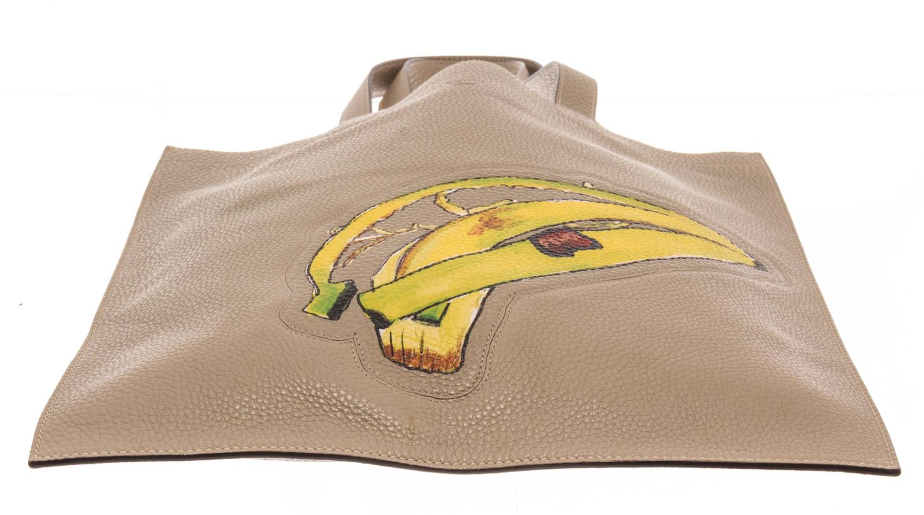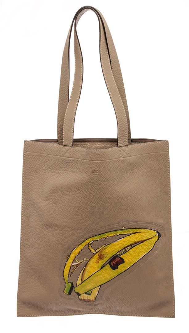 Fendi Banana Shopper Tote Beige Pebble Leather. Brand: Fendi, Style: Banana Shopper, Type: Tote, Exterior Color: Beige, Exterior Material: Pebble Leather, Exterior Pockets: None, Interior Color: Beige, Interior Material: Canvas, Interior Pockets: One zip, Closure: None, Handle/Strap Type: Top Handle, Length: 14.5, Width: 1, Height: 16.5, Handle Drop: 11.5. Item is sold AS-IS and all information pertaining to this lot is available in the photos or this description.