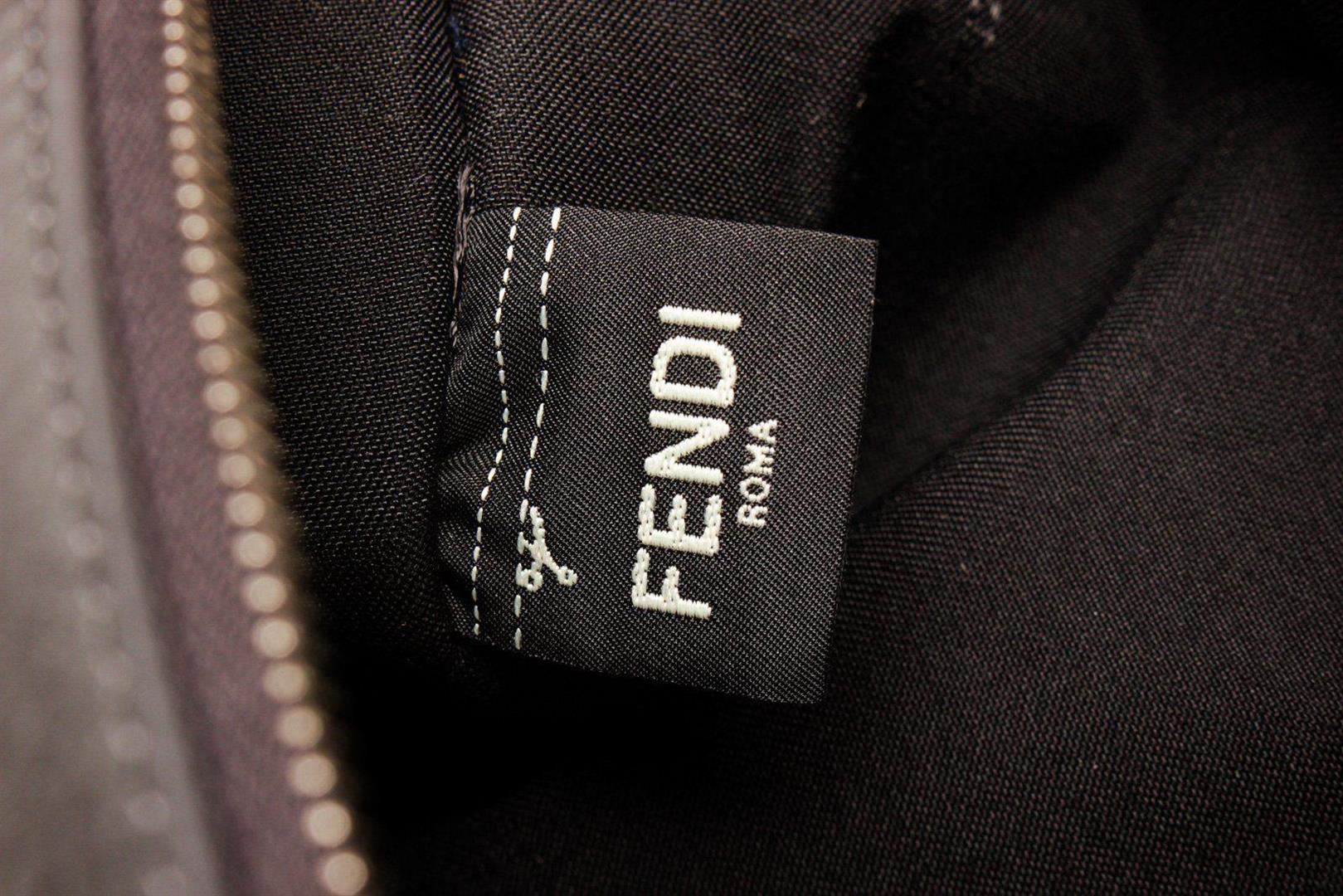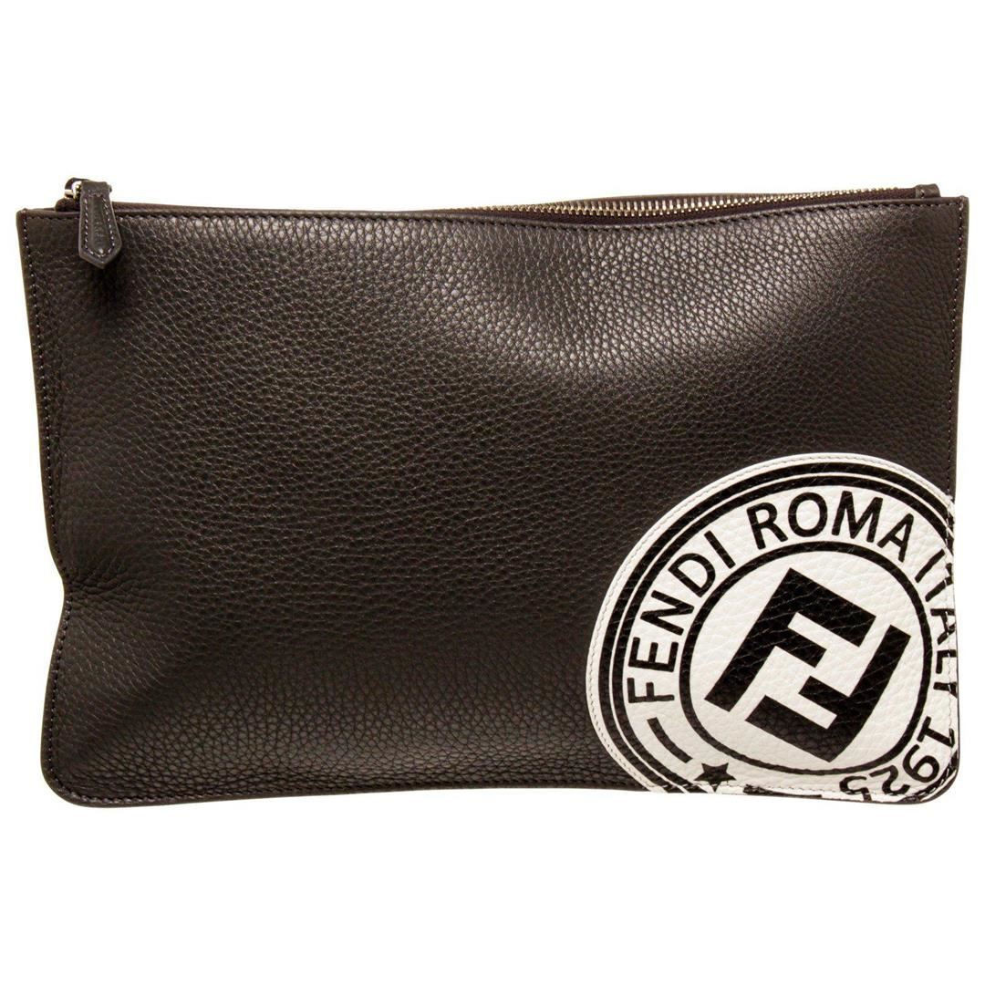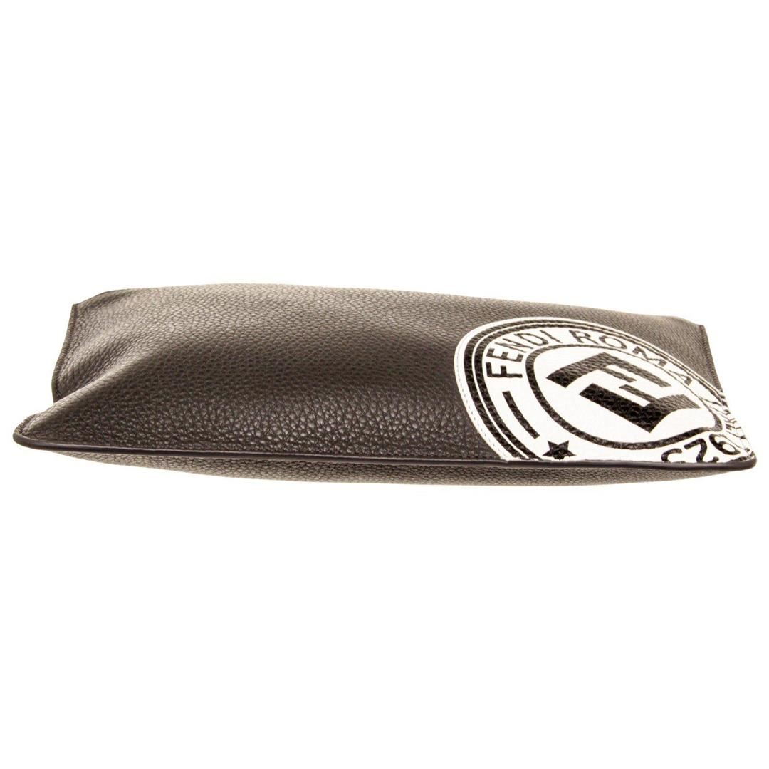 Fendi Black Canvas Leather FF Logo Stamp Flap Shoulder Bag with gold-tone hardware, trim leather, interior zip pockets, shoulder strap and flap closure.