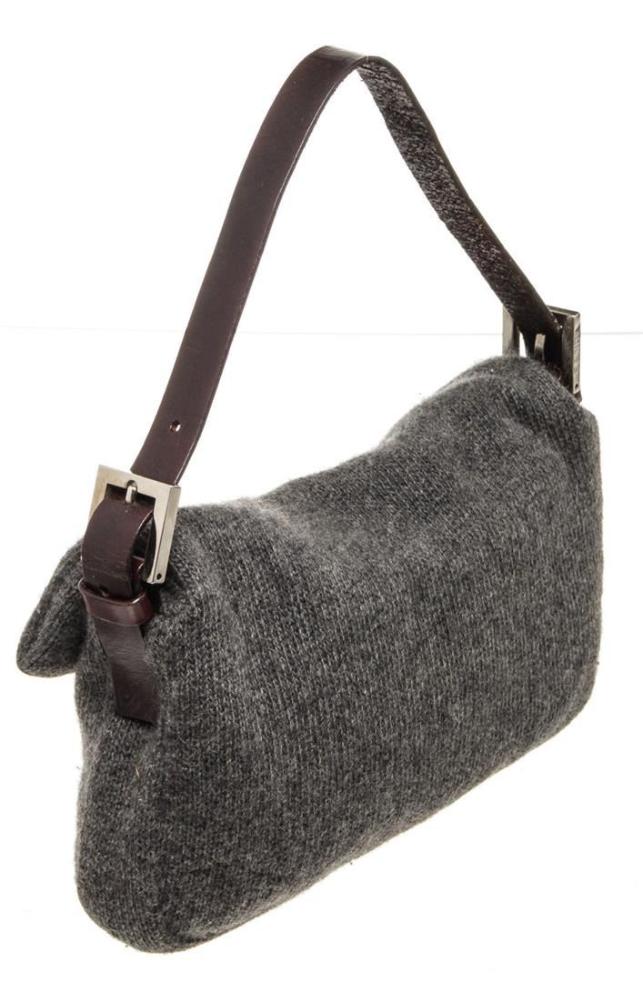 One Fendi Black Denim Mamma Baguette Hobo Bag. Item is sold AS-IS. All available information is listed in the description and shown in the photo. Fendi Black Denim Mamma Baguette Hobo Bag with gold-tone hardware, trim leather, interior zip pocket, leather lining, shoulder strap and snap closure.