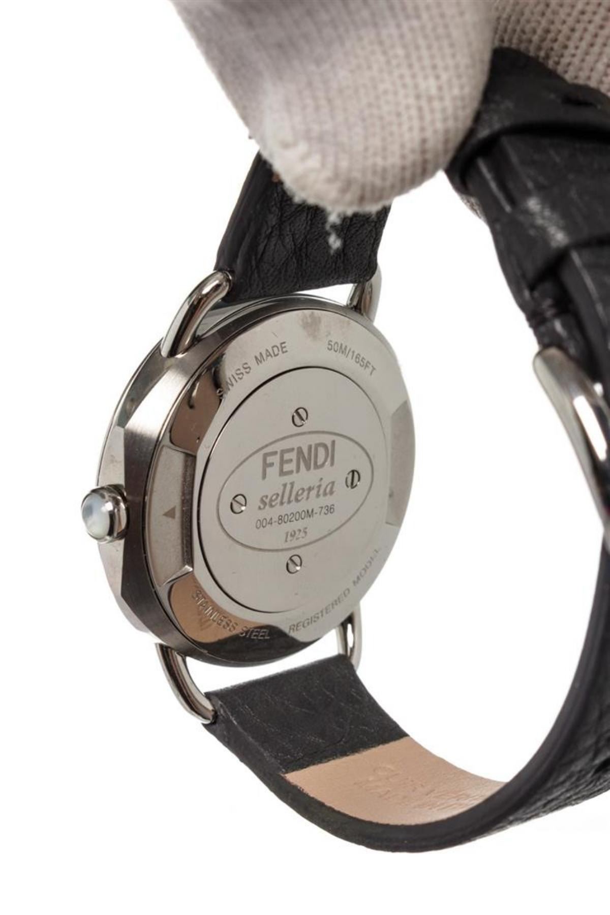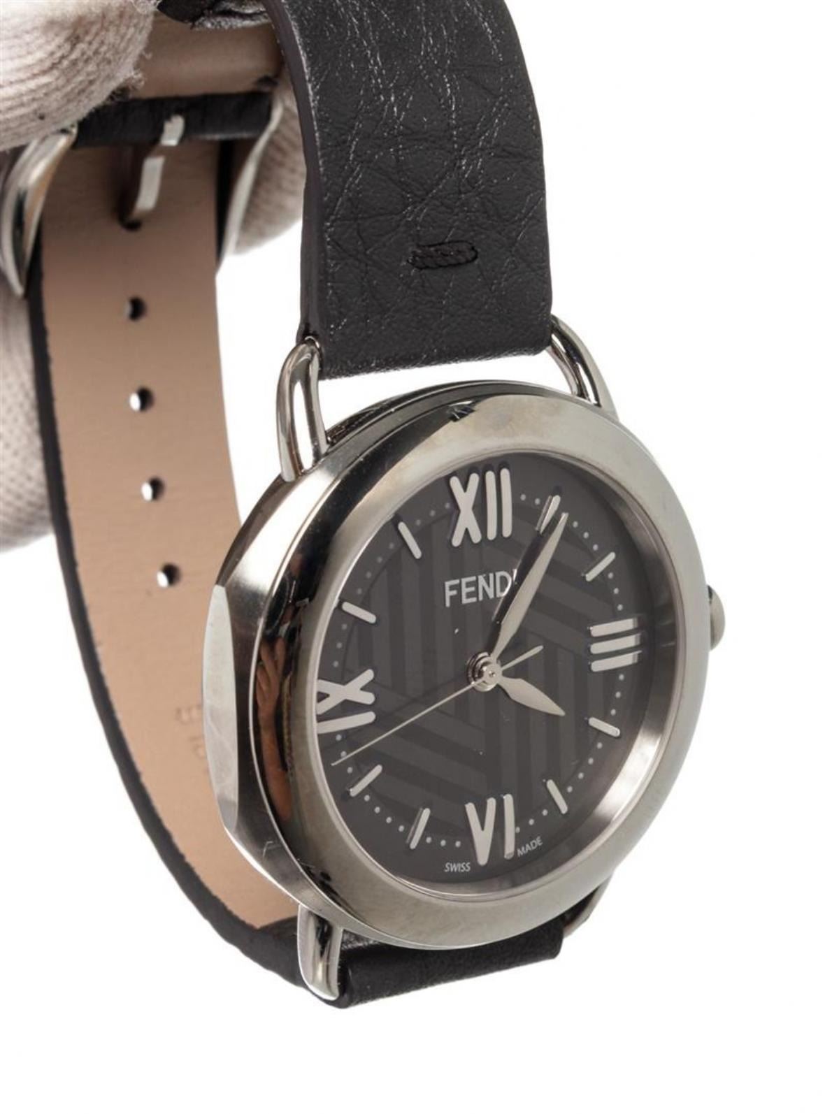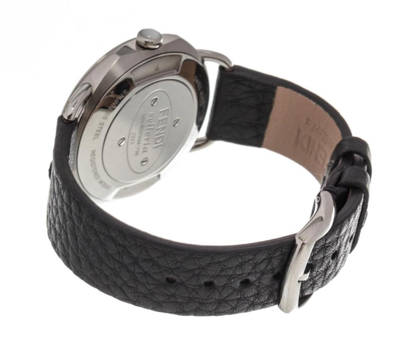 Fendi Black Leather Selleria Quartz Watch with leather silver-tone hardware.