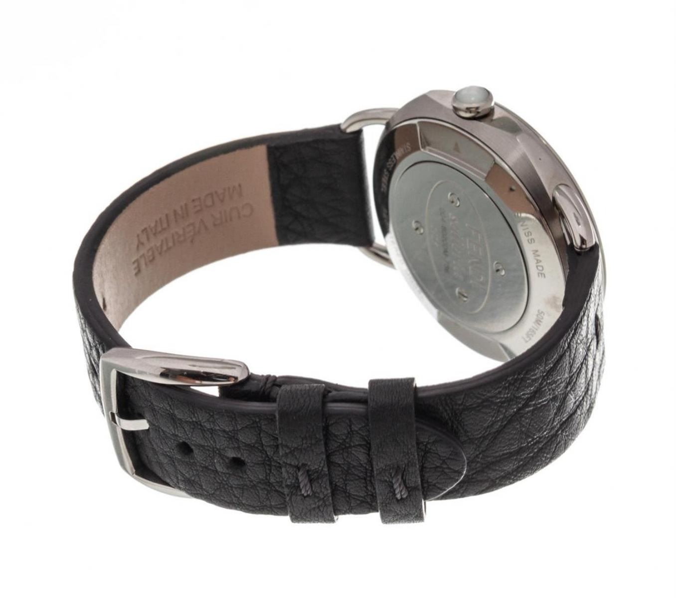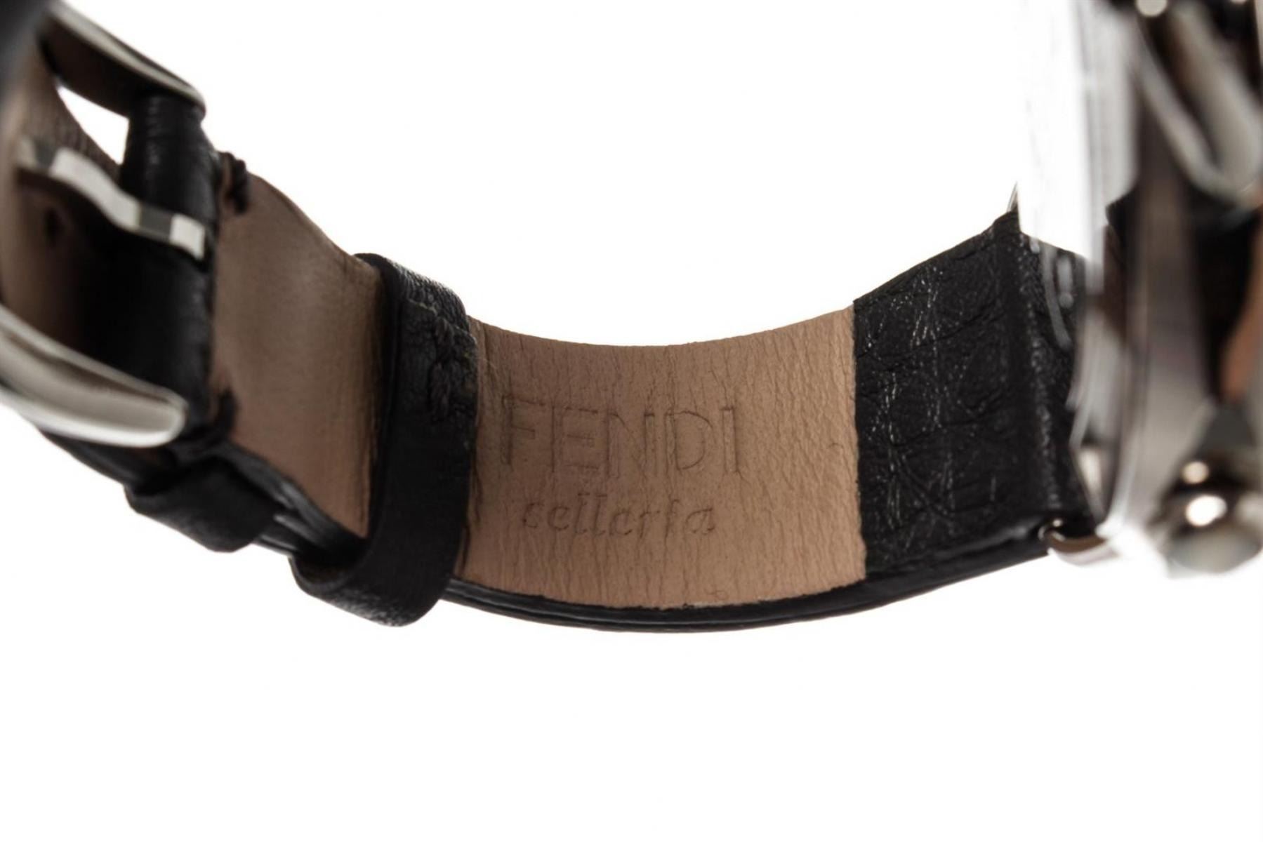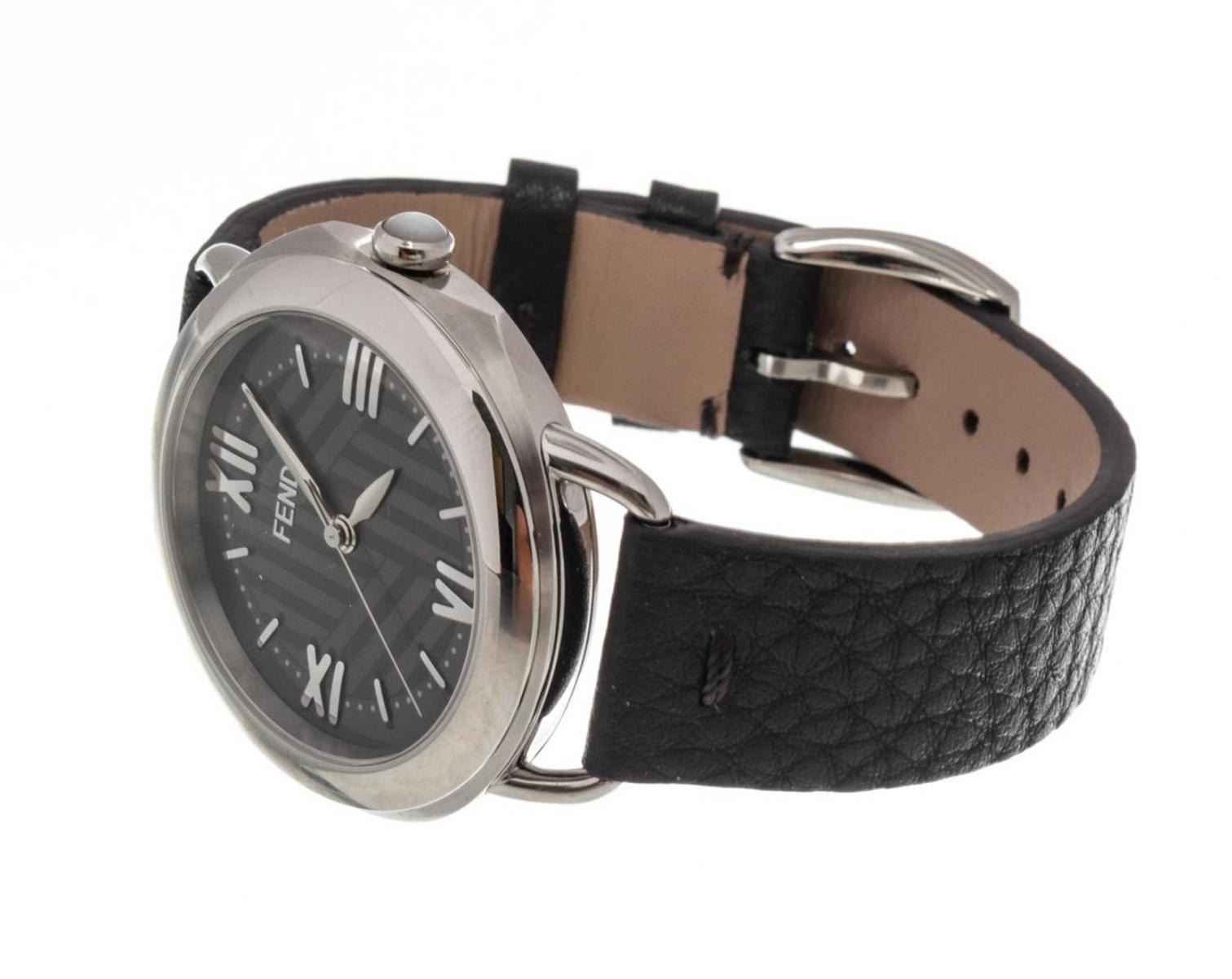 Fendi Black Leather Selleria Quartz Watch with leather silver-tone hardware.