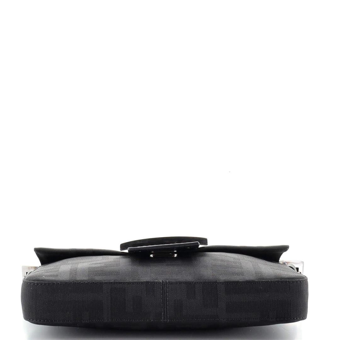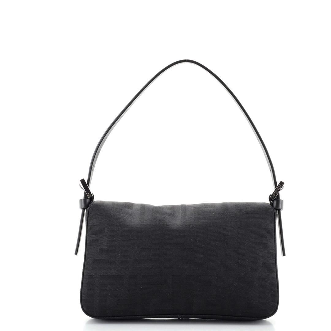 One Fendi Black Zucca Canvas Mini Baguette Shoulder Bag. Item is sold AS-IS. All available information is listed in the description and shown in the photo. Fendi Black Zucca Canvas Mini Baguette Shoulder Bag Condition Details: Minor wear on handle, cracking on handle wax edges, scratches on hardware. Measurements: Height 5", Width 7", Depth 1", Strap Drop -"