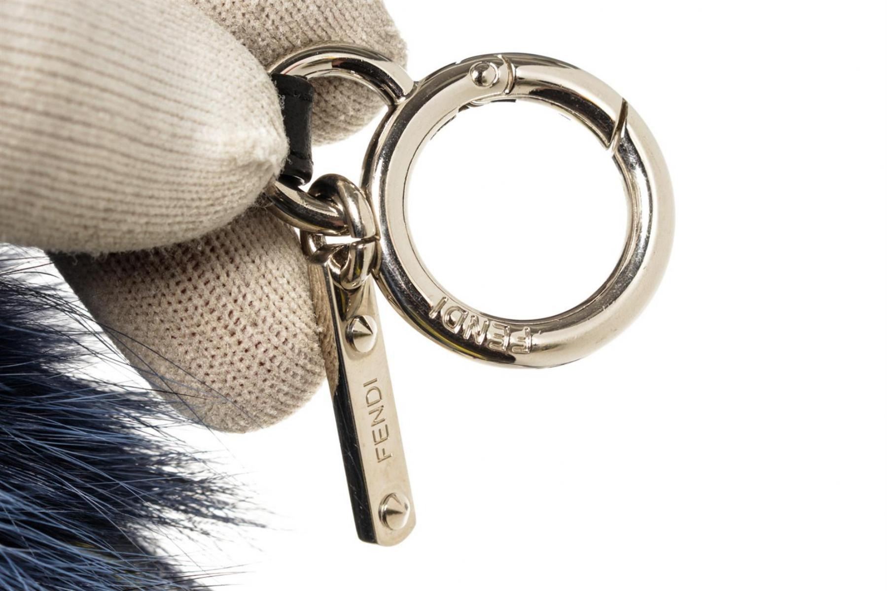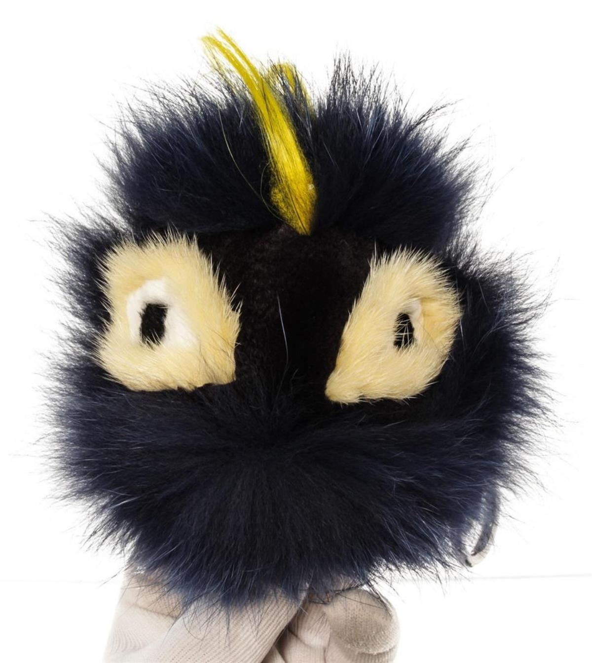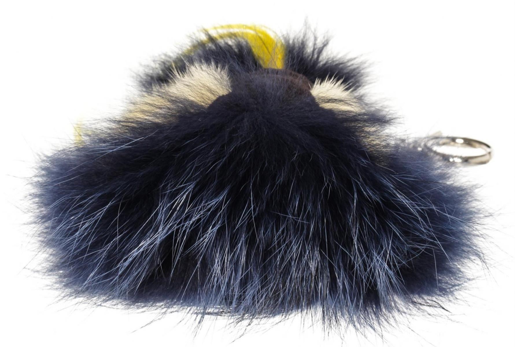 Blue fur and black leather adornment Fendi Monster Bug bag charm with silver-tone hardware and O-ring closure to attach the bag charm to your favorite bag. 9"L x 5.5"W x 5.5"H