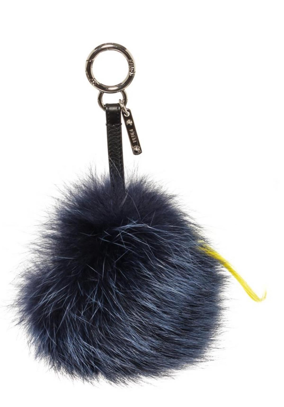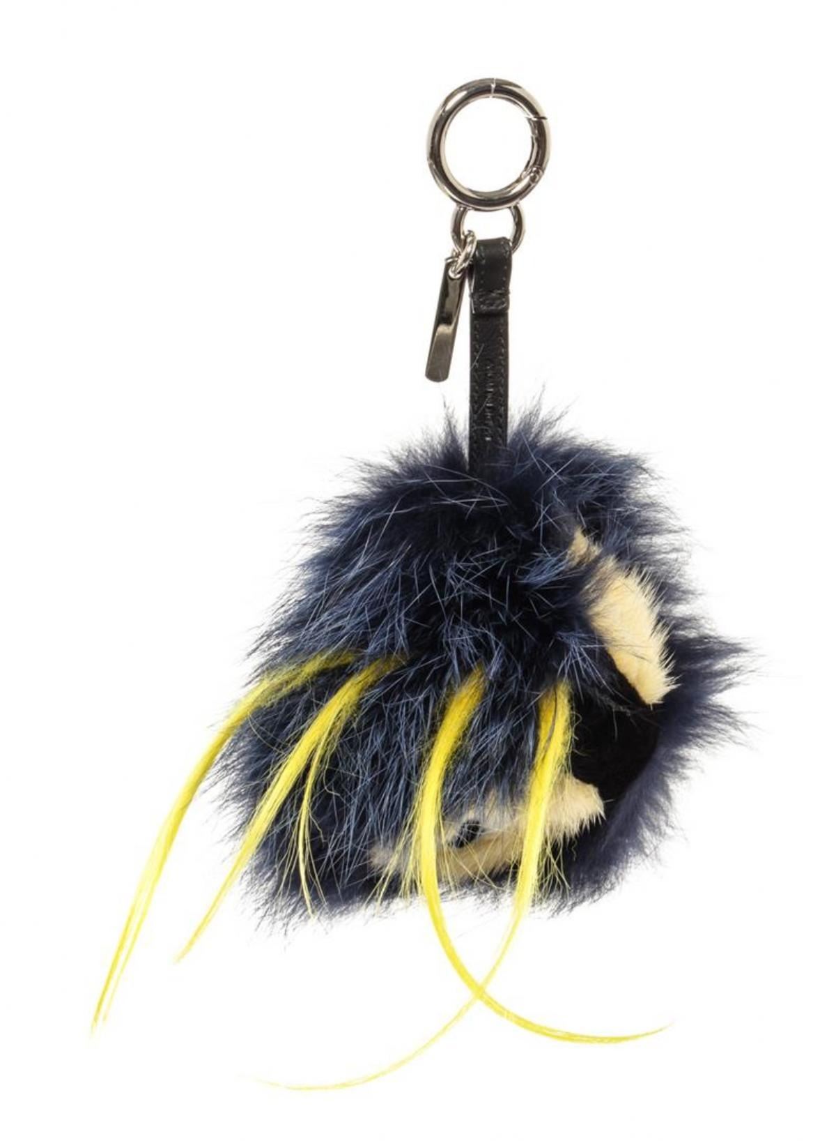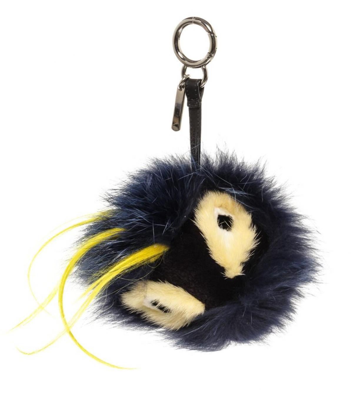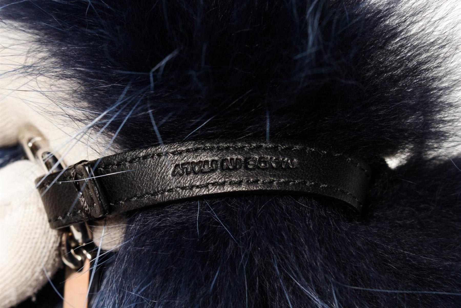 Blue fur and black leather adornment Fendi Monster Bug bag charm with silver-tone hardware and O-ring closure to attach the bag charm to your favorite bag. 9"L x 5.5"W x 5.5"H