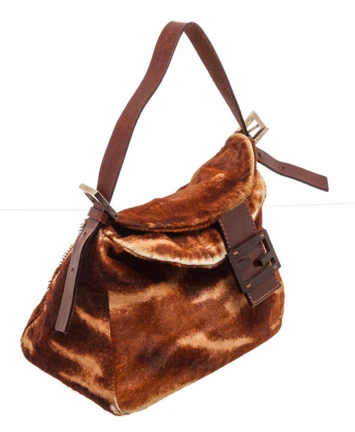 Fendi Brown Mamma Baguette Hobo Bag with gold-tone hardware, trim leather, leather lining, shoulder strap and snap closure. MEASUREMENTS: Length 8 in / 20 cm Width 11.5 in / 29 cm Height 5 in / 13 cm Condition: Pre-Owned Good overall, please see photographs for detail.
