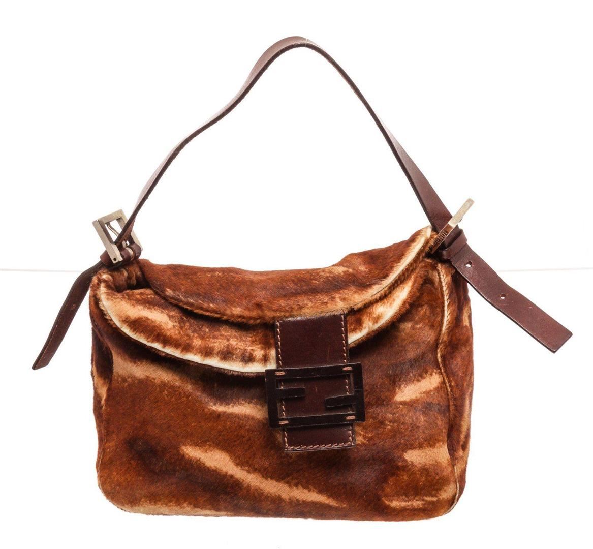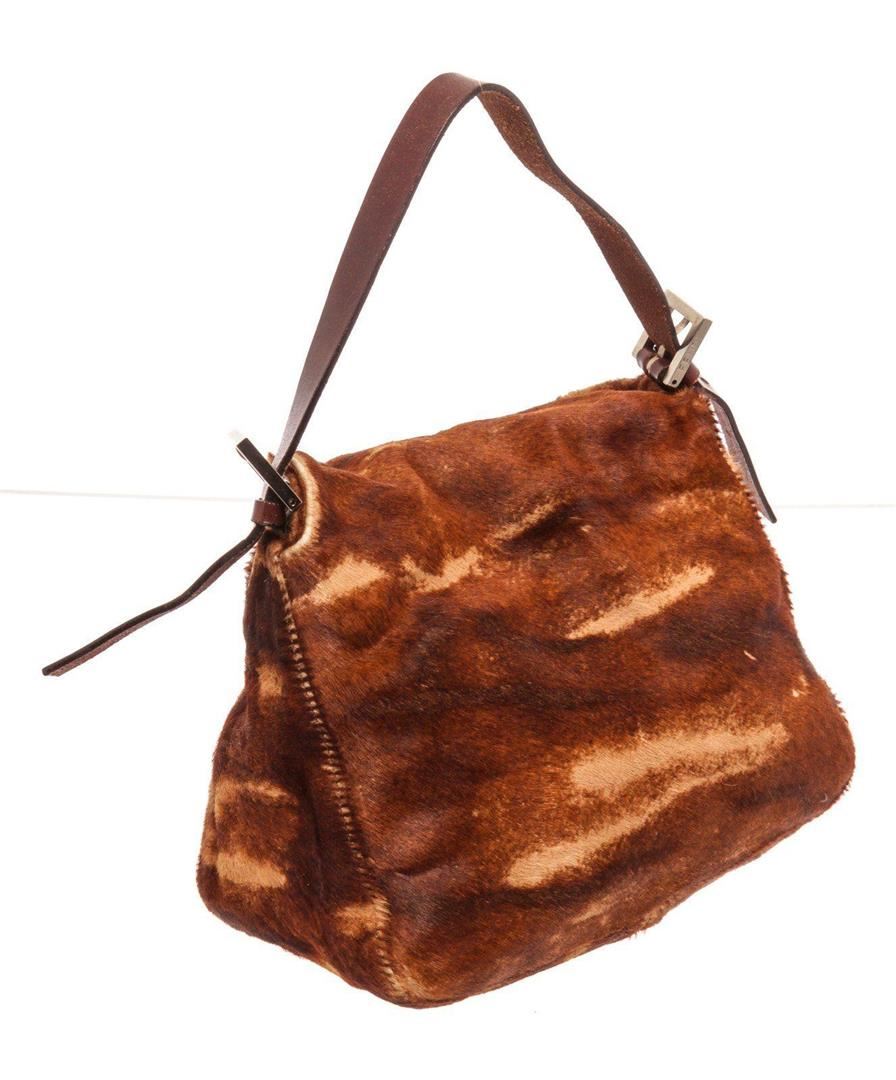 Fendi Brown Mamma Baguette Hobo Bag with gold-tone hardware, trim leather, leather lining, shoulder strap and snap closure. MEASUREMENTS: Length 8 in / 20 cm Width 11.5 in / 29 cm Height 5 in / 13 cm Condition: Pre-Owned Good overall, please see photographs for detail.
