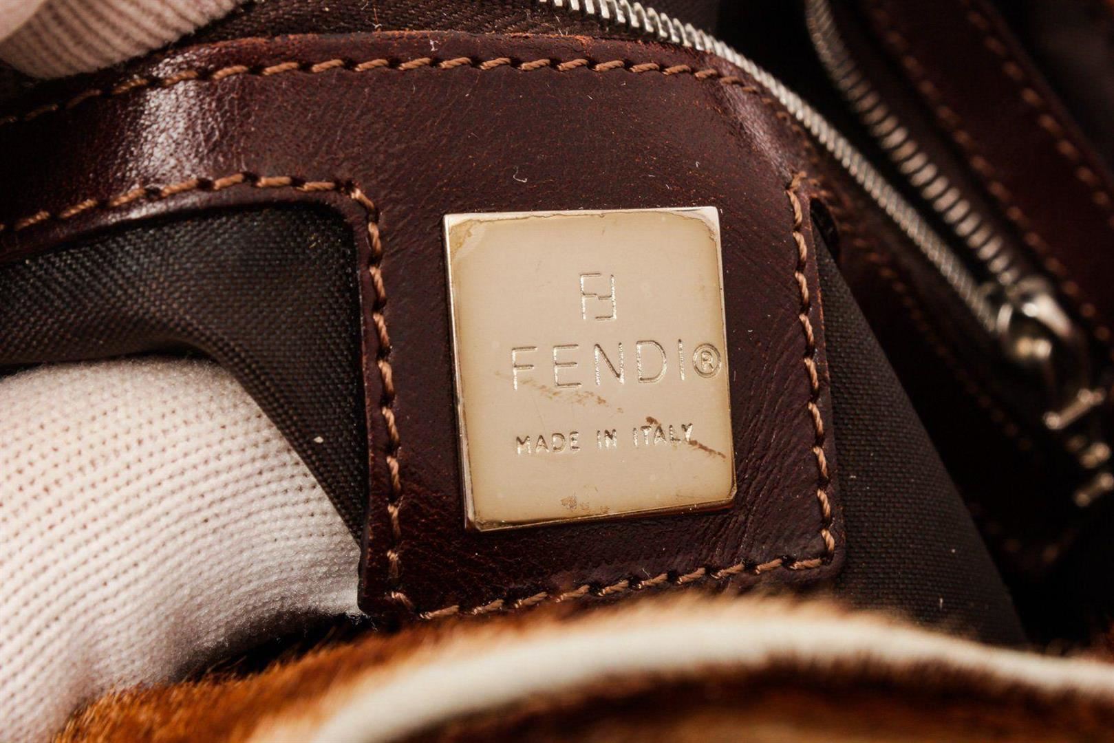 Fendi Brown Mamma Baguette Hobo Bag with gold-tone hardware, trim leather, leather lining, shoulder strap and snap closure. MEASUREMENTS: Length 8 in / 20 cm Width 11.5 in / 29 cm Height 5 in / 13 cm Condition: Pre-Owned Good overall, please see photographs for detail.