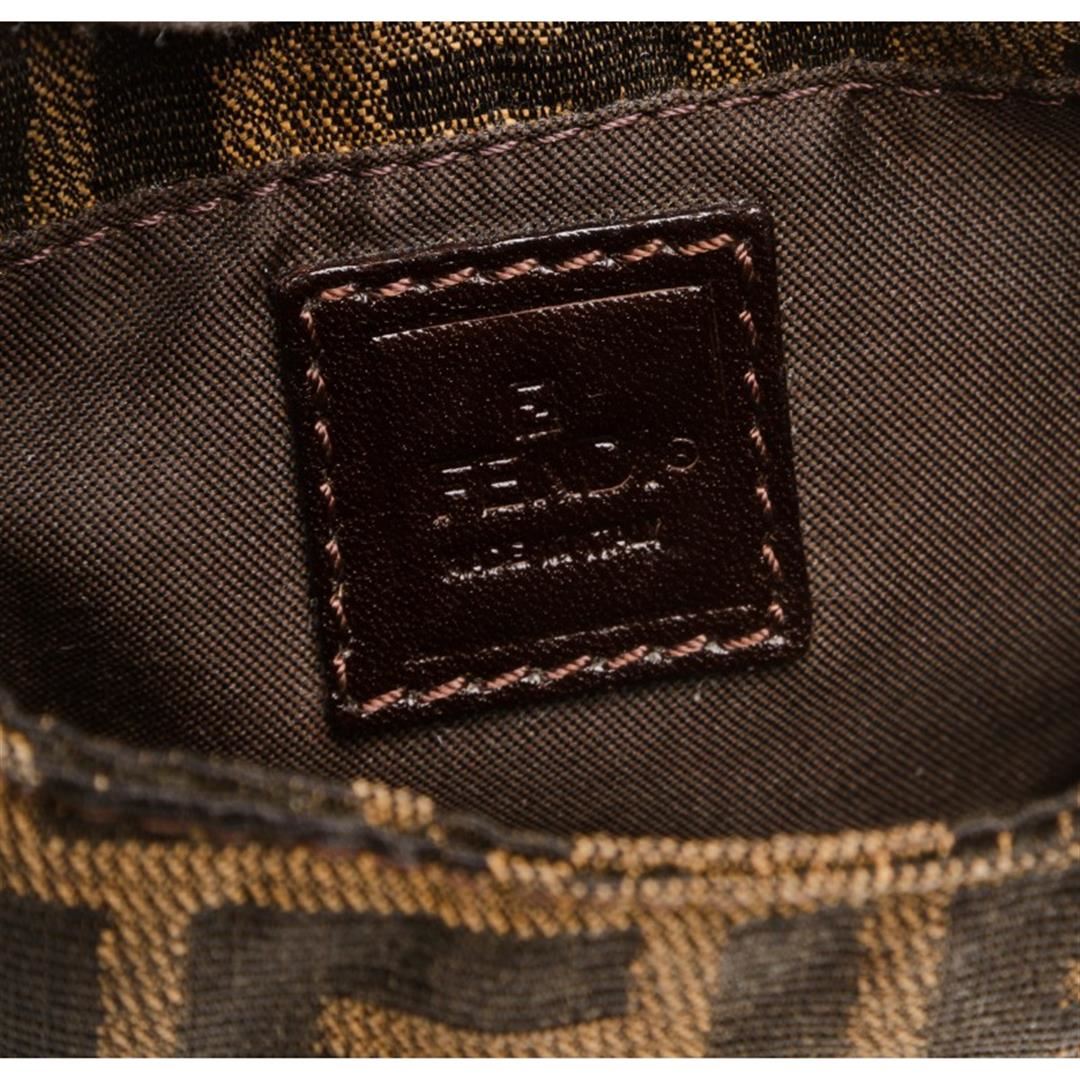 Overall magnetic button flap closure. Interior is fabric lined. Adjustable exterior handle. Item is pre-owned.
