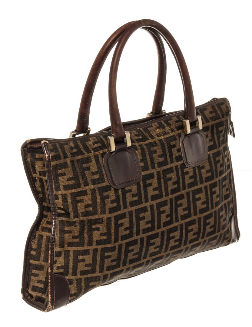 Fendi Business Bag. All available information is listed in the description and shown in the photos. Fendi Business Bag Zucca Brown Leather. Features gold hardware, brown leather handles, brown leather interior, and a gold zipper closure.