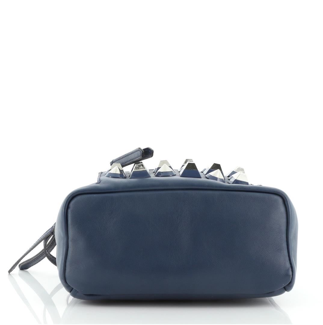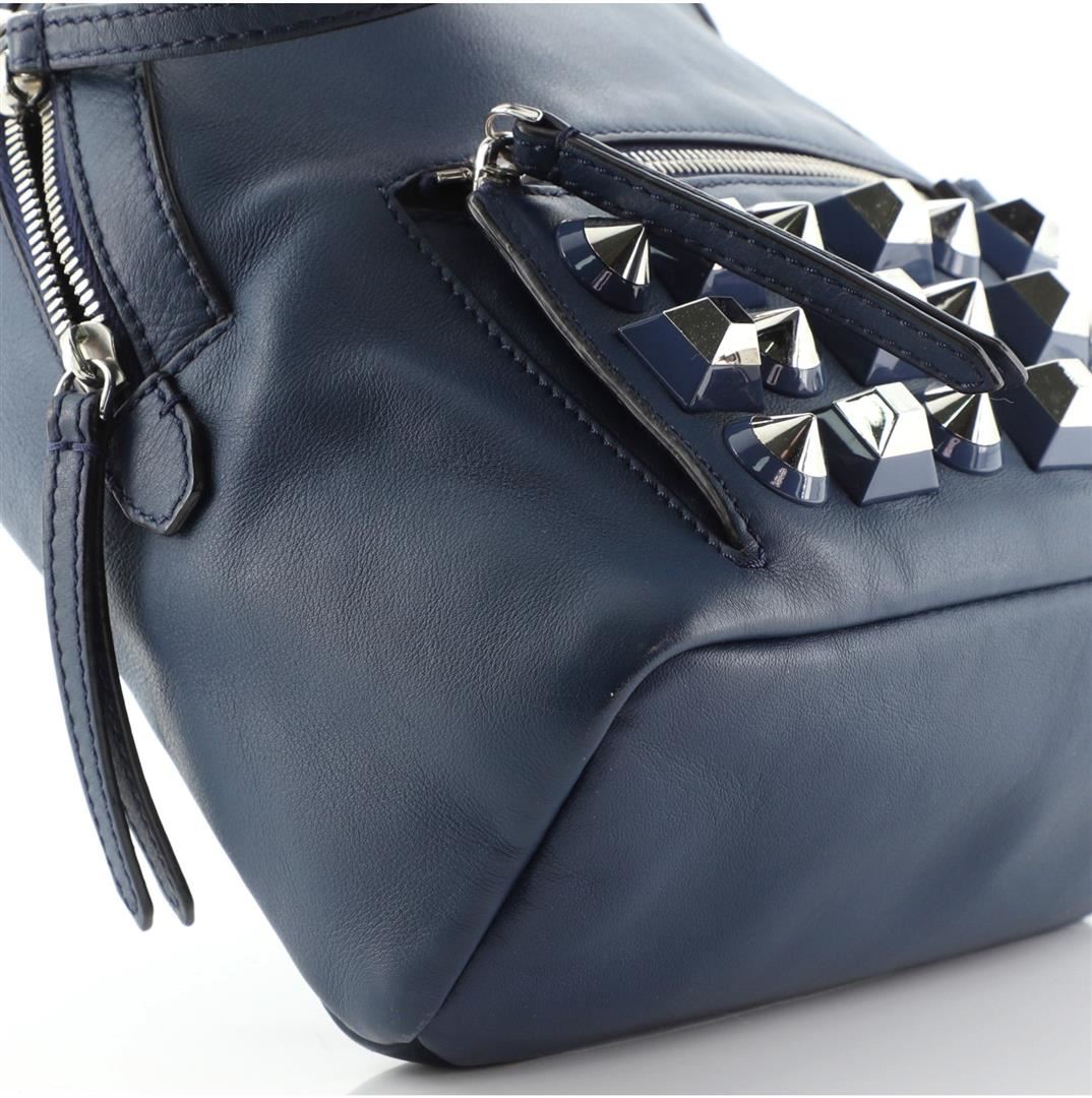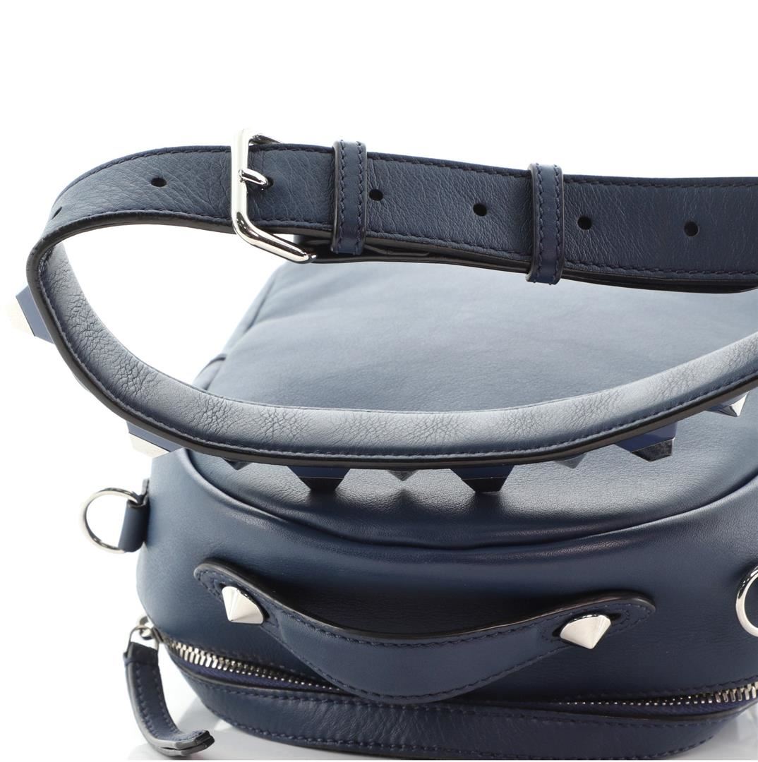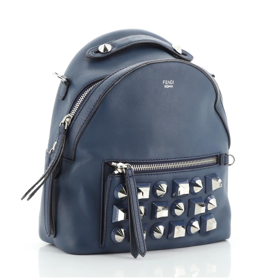 Fendi By The Way Backpack Crossbody Studded Leather Mini Blue Condition Details: Wear on base corners, moderate creasing on exterior, minor wear on strap. Splitting on opening trim wax edges, light cracking on strap wax edges, wear and marks in interi