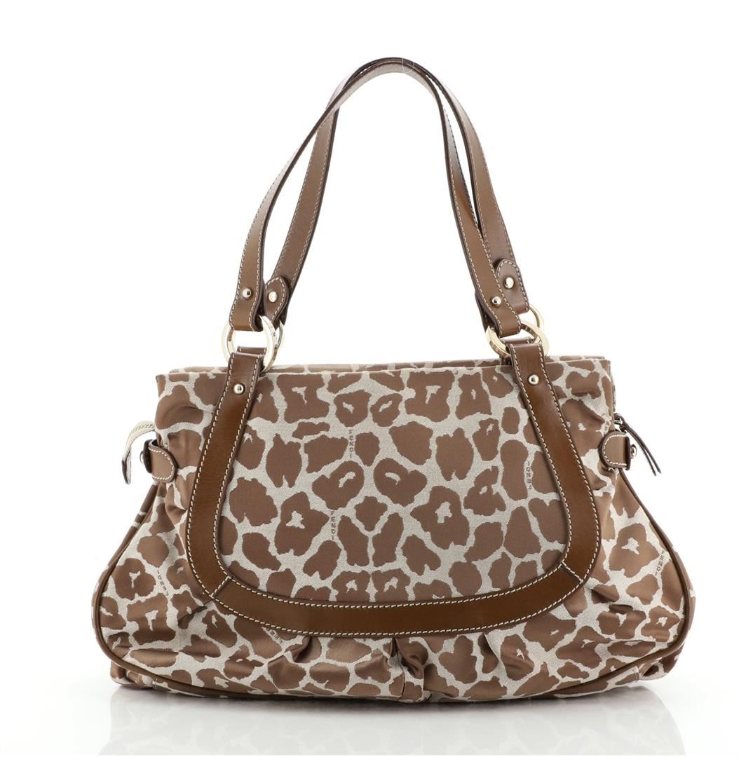 One Fendi Chef Tote Printed Satin Large Brown, Neutral, Print. Item is sold AS-IS. All available information is listed in the description and shown in the photo. Fendi Chef Tote Printed Satin Large Brown, Neutral, Print Condition Details: Minor wear and scuffs on leather trims, creasing on exterior and handles. Heavy splitting, peeling and cracking on handle wax edges, small glue stains underneath zipper tape, scratches on hardware. Height ", Width ", Depth ", Strap Drop None