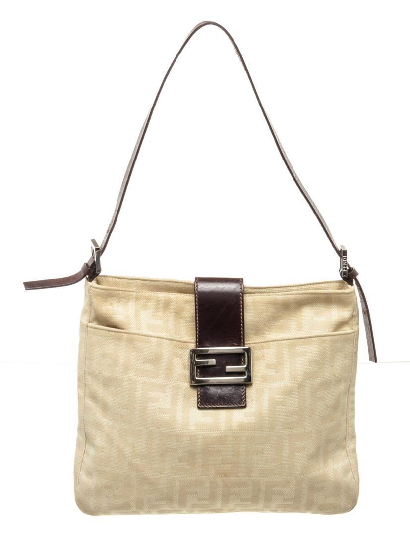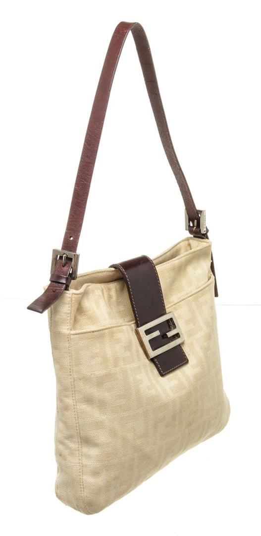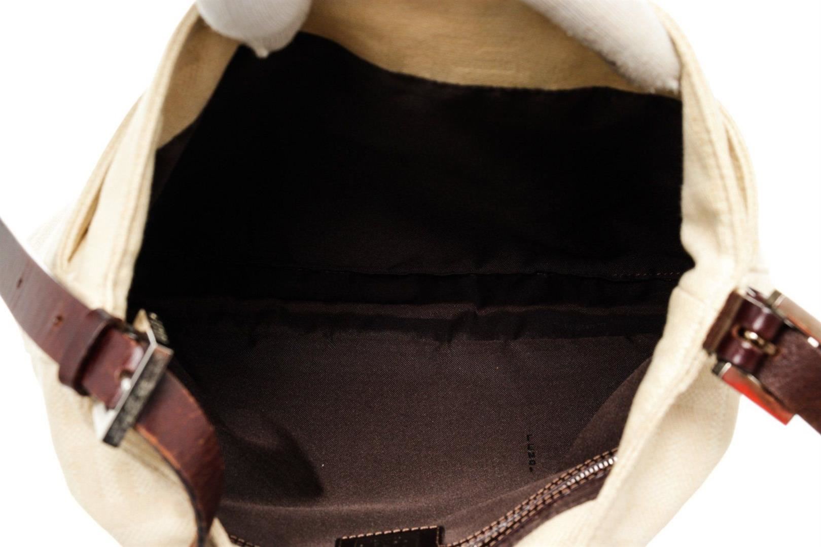 Fendi Cream Leather Mamma Baugette Shoulder Bag with leather, gold-tone hardware, interior slip pocket, shoulder strap and snap closure.