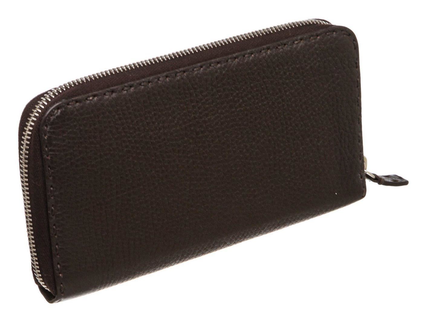 Fendi Salleria dark brown leather zip around wallet with silver-tone hardware, center zip pocket, dual bill pockets, and eight card slots. Measurements: Length: 7.5 in / 19 cm Width: 1 in / 3 cm 4 in / 10 cm Condition: Pre-Owned Good overall, please see photographs for detail.