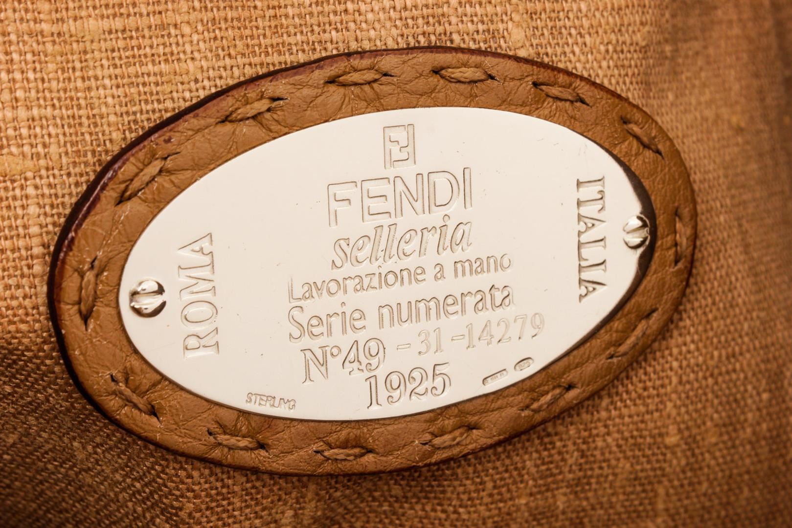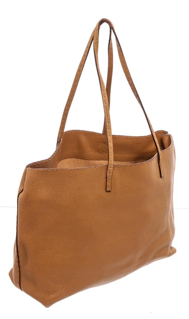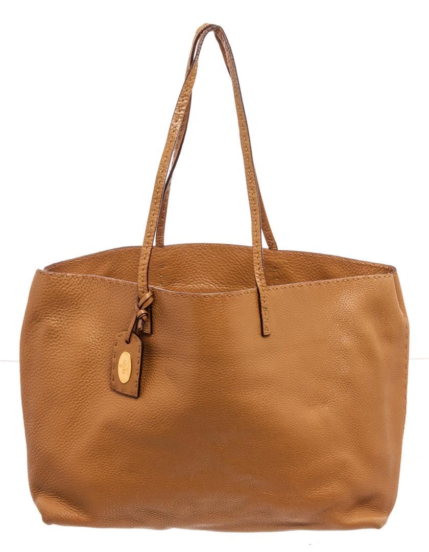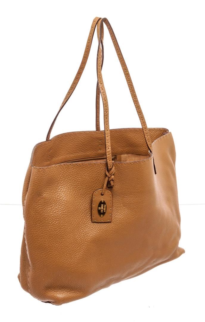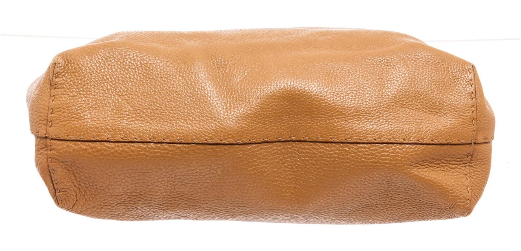 Fendi Gold Selleria Tote Bag with gold-tone hardware, trim leather, shoulder strap and snap closure.