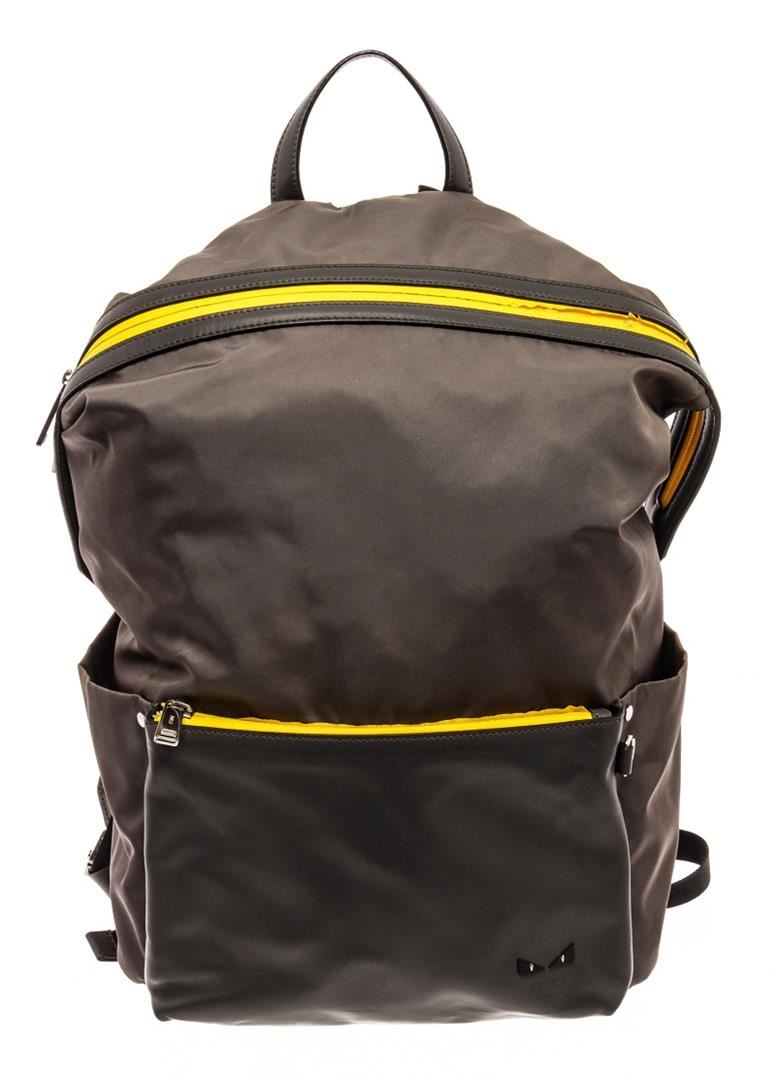 Fendi Grey Yellow Leather and Nylon Backpack. All available information is listed in the description and shown in the photos. Fendi Grey Yellow Leather and Nylon Backpack with backpack featuring long zip fastening with water-resistant coating that attaches at the sides with a snap button, zipped front pocket, two side pockets, adjustable shoulder straps and technical mesh back, zipped inner pocket, fluorescent yellow satin-effect metal. W 12.01 x H 16.14 x D 6.3 inches, / W 30,5 x H 41 x D 16 cm
