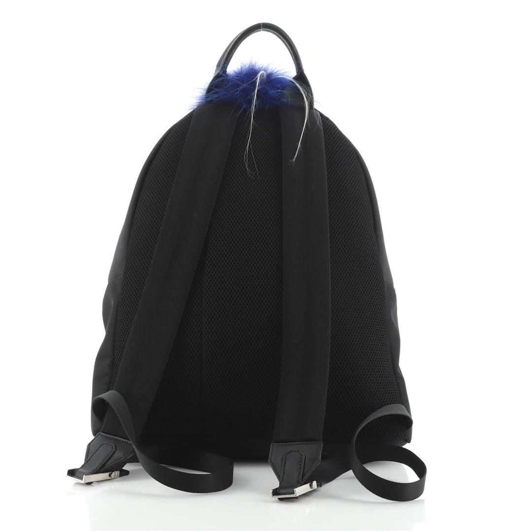 Fendi Karlito Backpack Nylon with Fur Large Black, Blue, White Condition Details: Wear on exterior, scratches on hardware. eight 17", Width 13", Depth 5", Strap Drop 8-17