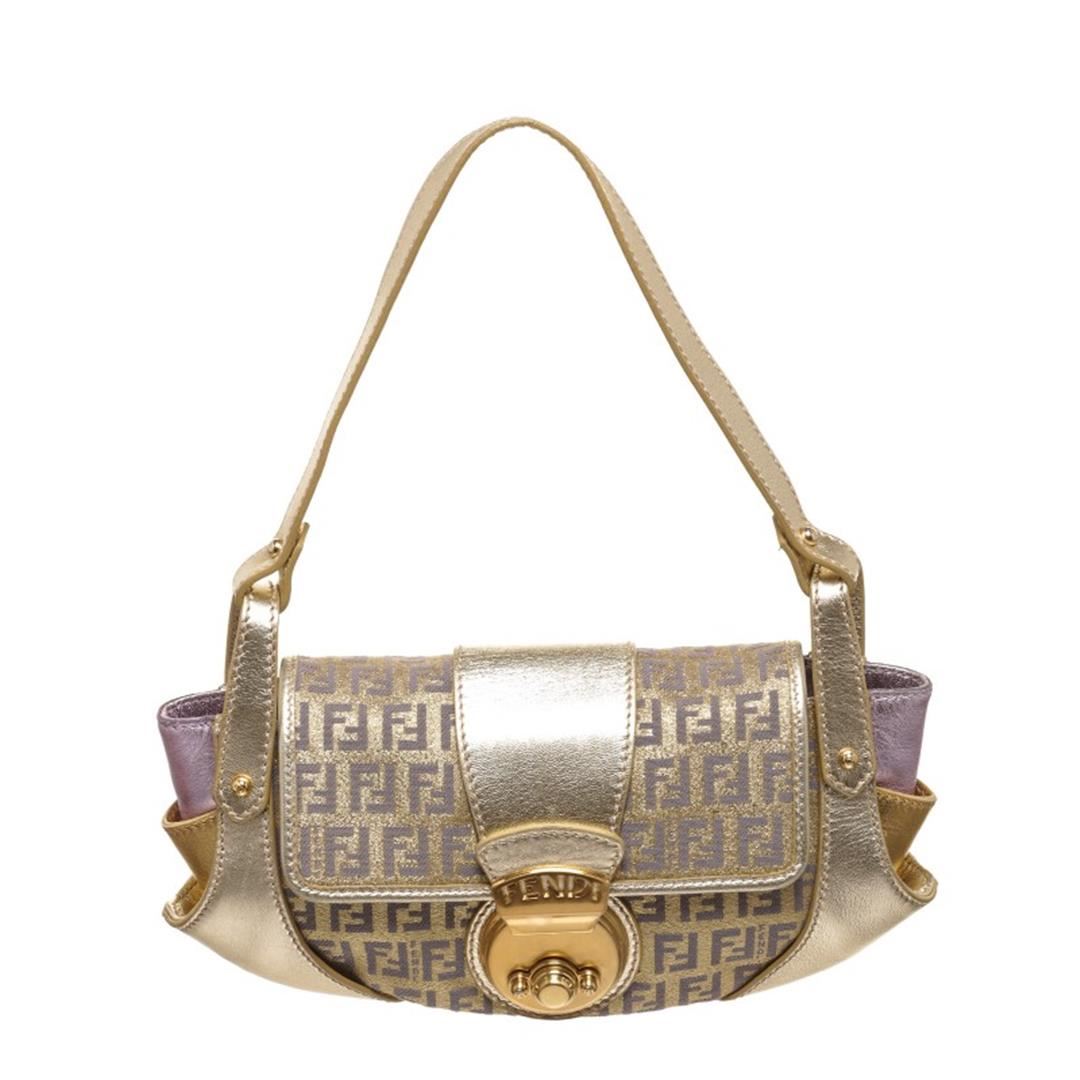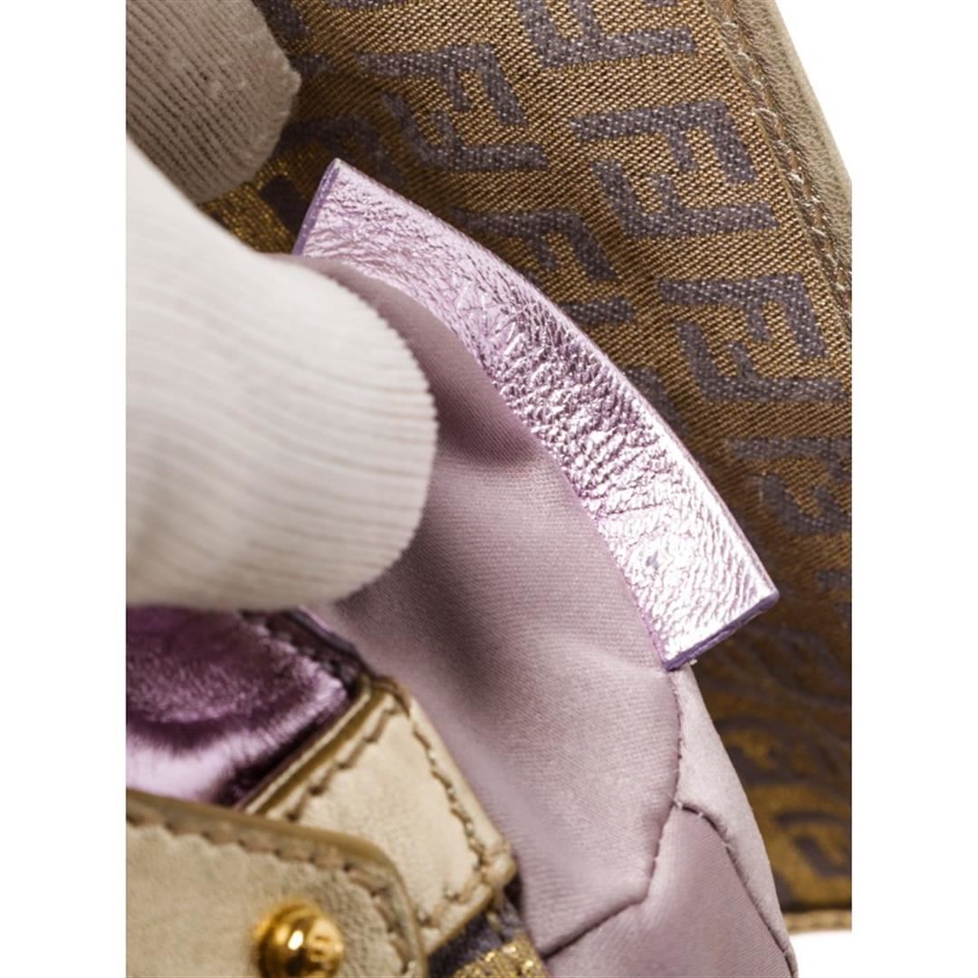 Overall twist push lock closure. Interior contains satin lining with oneip pocket. Item is pre-owned.