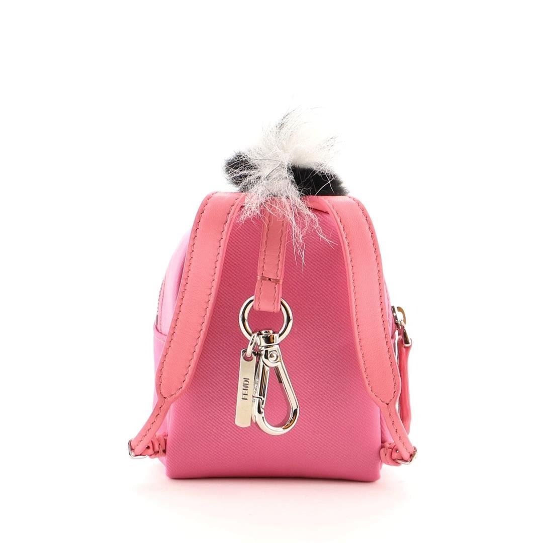One Fendi Monster Backpack Bag Charm Nylon with Leather and Fur Micro Pink. Item is sold AS-IS. All available information is listed in the description and shown in the photo. Fendi Monster Backpack Bag Charm Nylon with Leather and Fur Micro Pink Condition Details: Small mark on front opening trim, scratches on hardware. Height 6.5", Width 3.5", Depth 1.5", Strap Drop 1.5