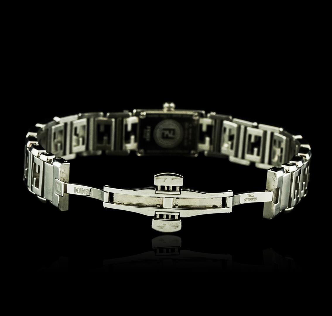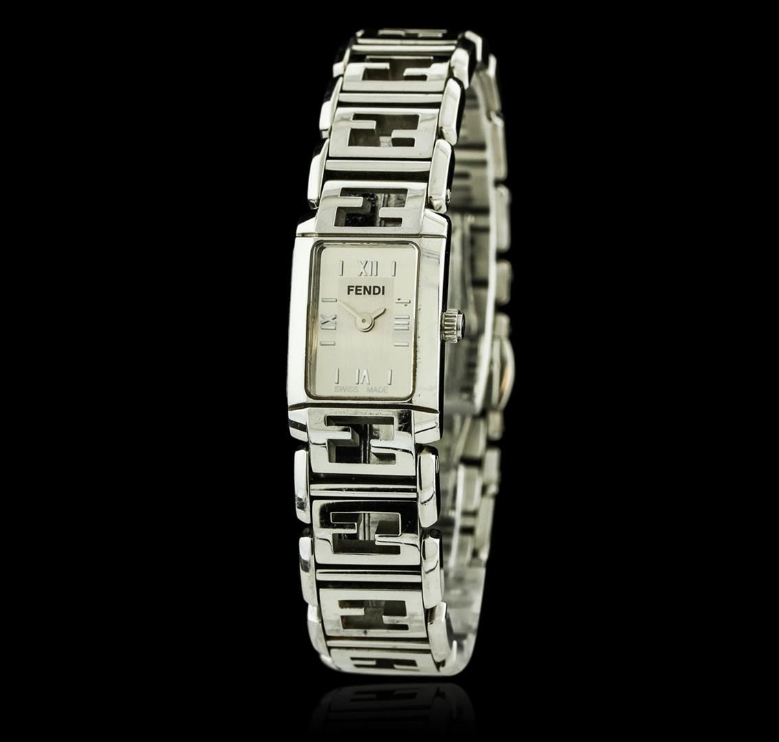 One Fendi Orologi wristwatch featuring: Quartz movement. Case: Stainless steel. Crown: Stainless steel. Dial: Silver-tone with Roman numeral markers. Bracelet: stainless steel.