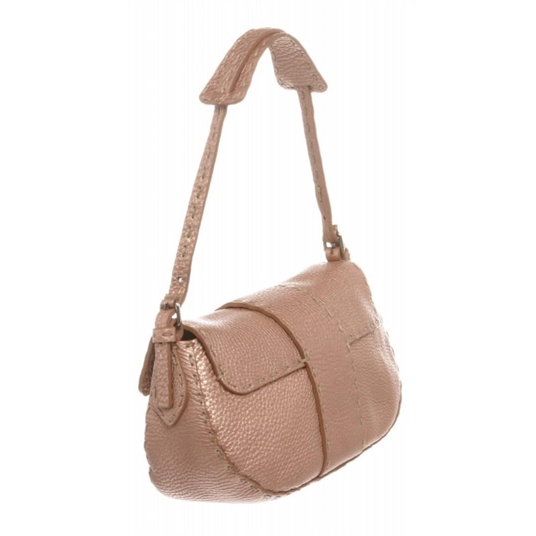 Overall magnetic snap closure. Interior contains suede lining and one side zip pocket. Item is pre-owned.