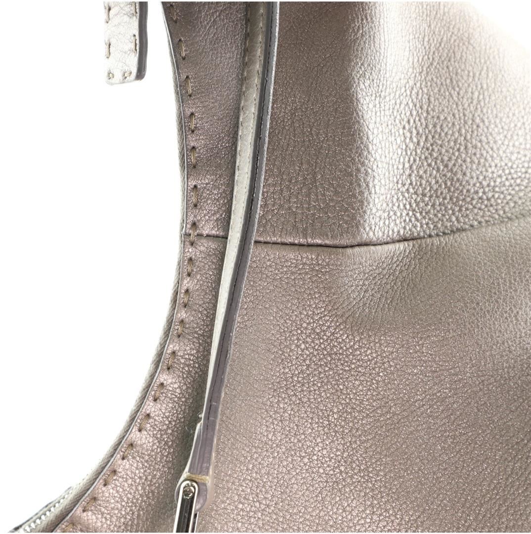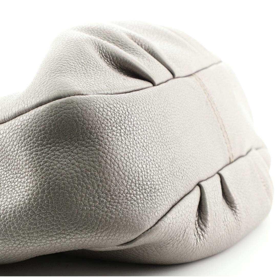 Fendi Selleria Chain Hobo Leather Small Silver Condition Details: Heavy splitting and cracking on strap and opening trim wax edges. Minor wear and scuffs on exterior, glue stains on opening trim, scratches on hardware. Height ", Width ", Depth