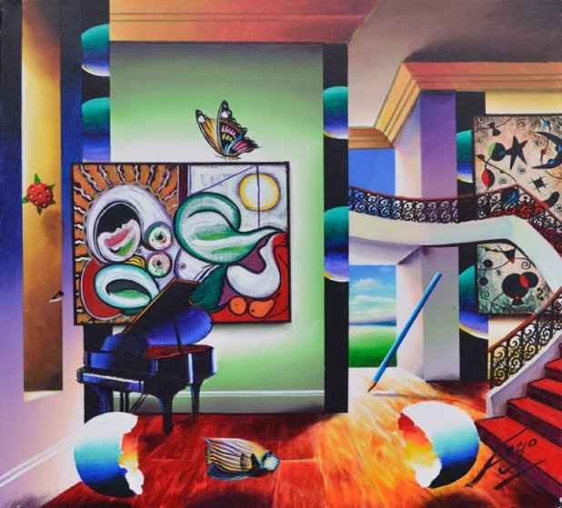 Ferjo "Music Wakes Up Sleeping Nude" Hand Signed Original Oil on Stretched Canvas Dimensions: 24 x 24 Inches