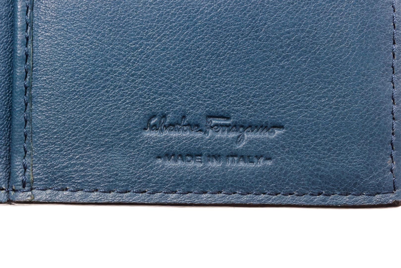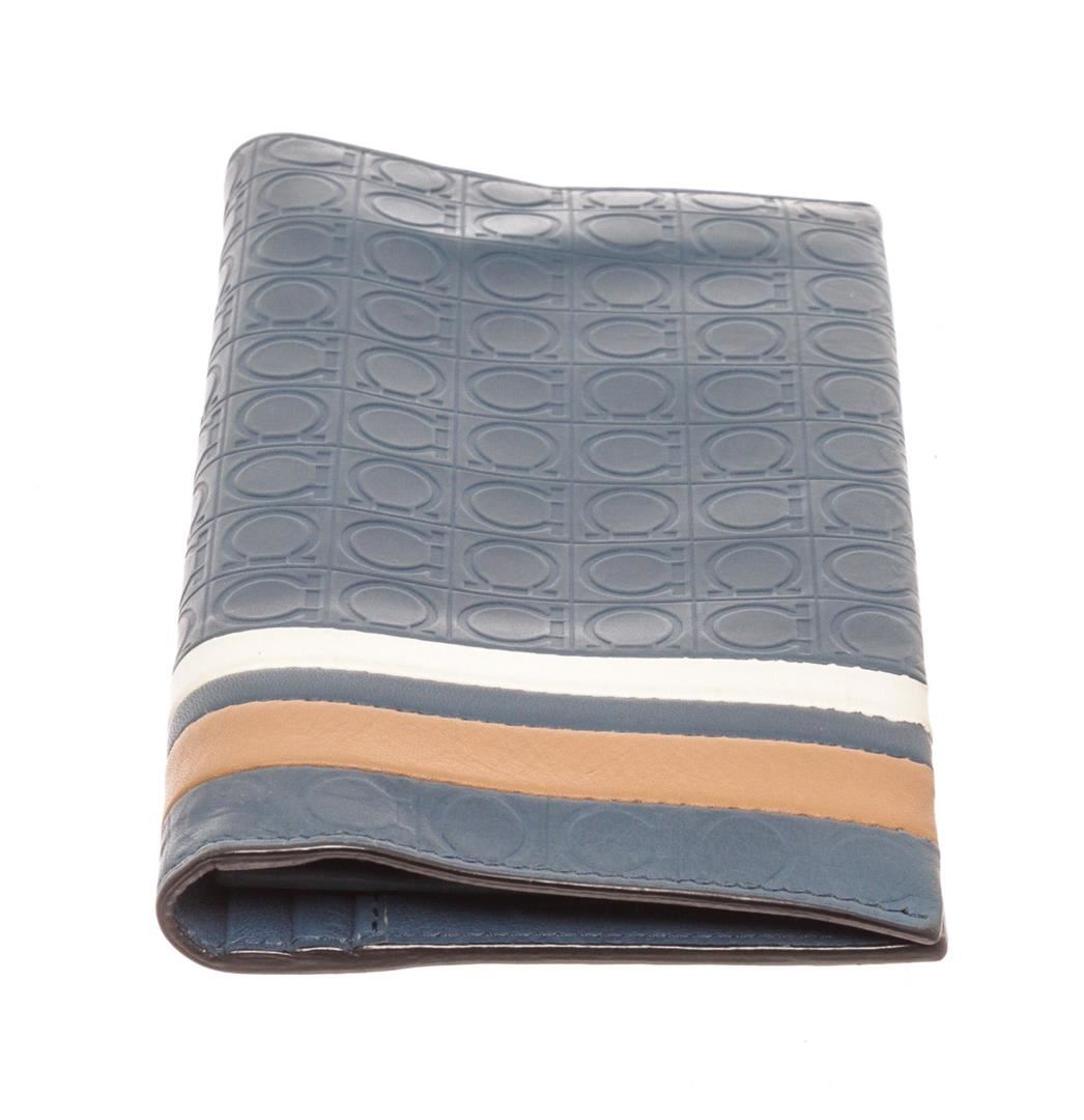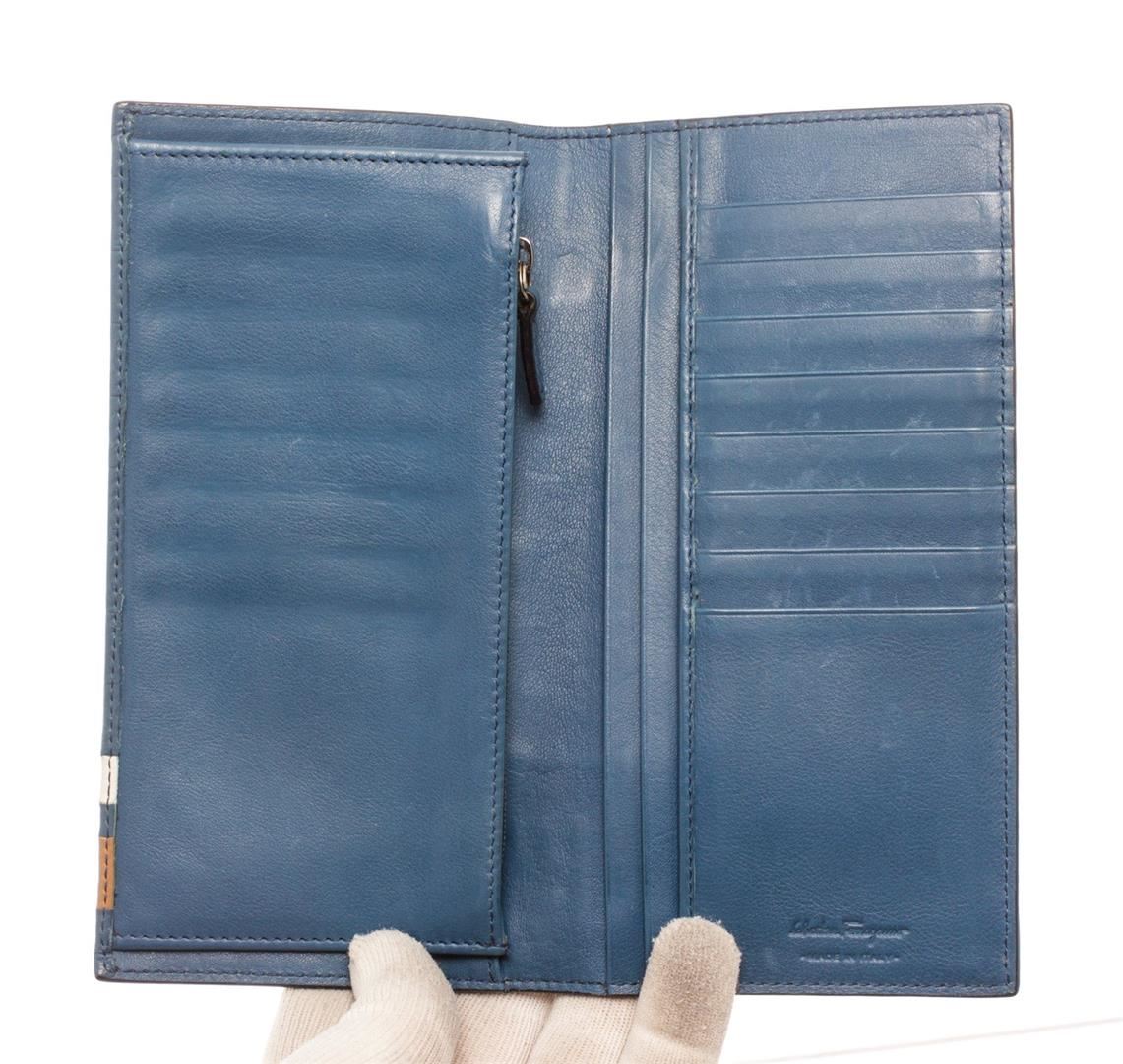 Ferragamo Blue Leather Continental Wallet with silver-tone hardware, leather lining interior pocket bifold closure.